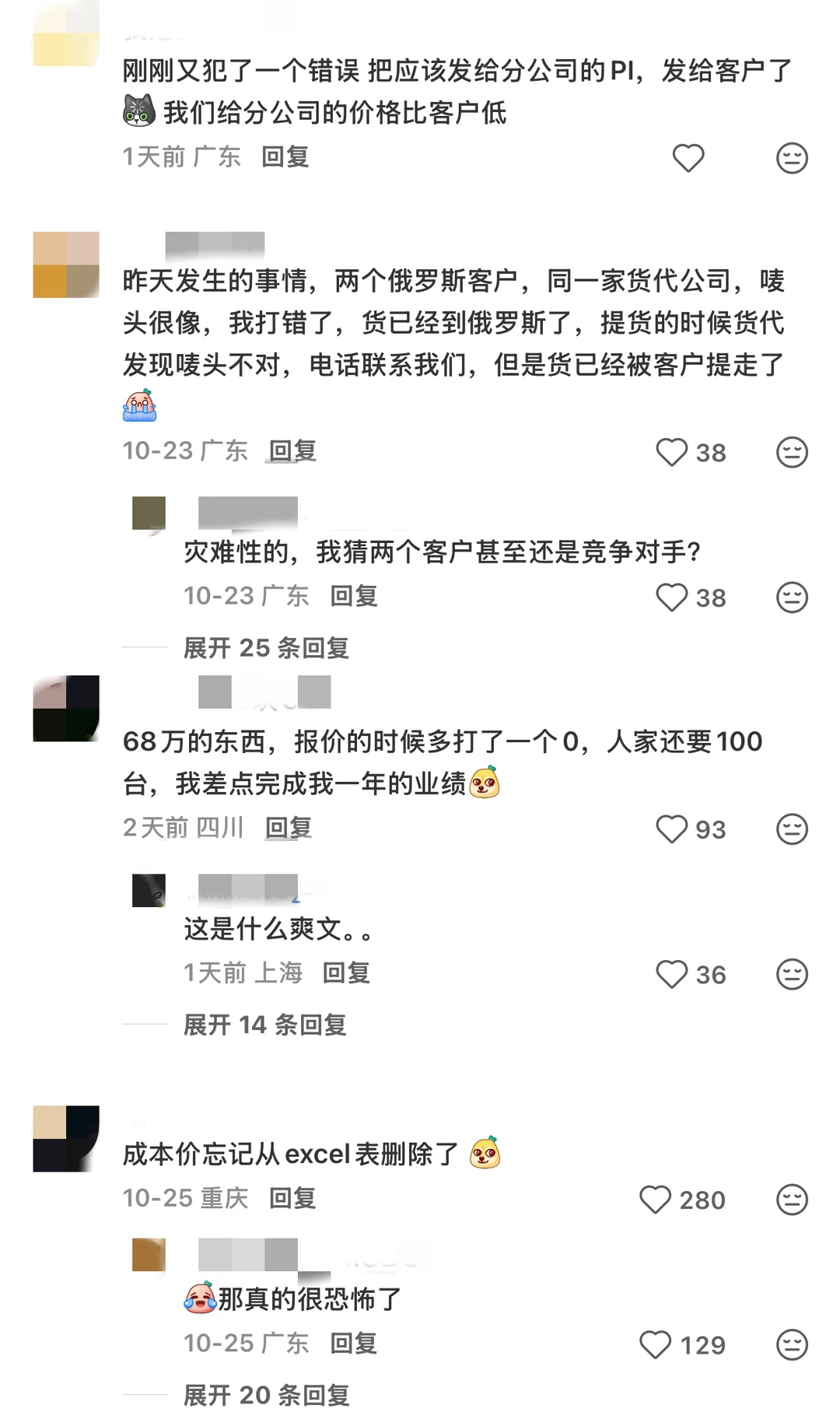 外贸人捅出的这些篓子真的把焦焦看呆了,每一位都是重磅炸弹,给老板和老外沉重的打击,是读完都要笑晕过去的程度,真的又心疼又好笑(但每次做外贸心态崩的时候,看到这些都会有莫名的安慰怎么回事哈哈哈哈),不过大部分都是新人时期犯的错啦~慢慢来会越来越有经验的,想听听大家在工作中捅过的娄子有多离谱!!!