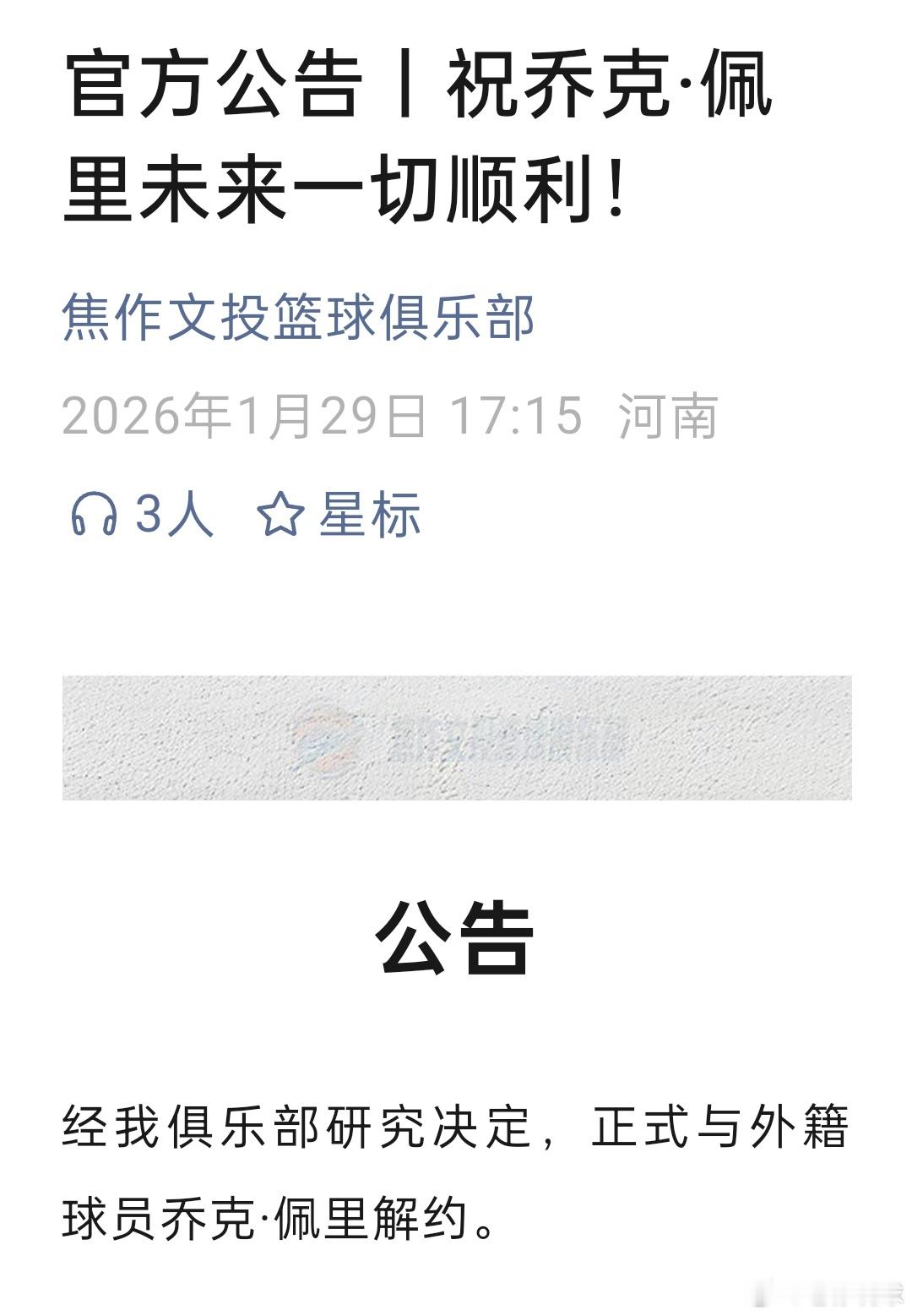 老徐说球之旅河南篮球焦作文旅男篮 官宣了!焦作文旅男篮正式与外籍球员乔克·佩里解约。祝佩里未来一切顺利!
