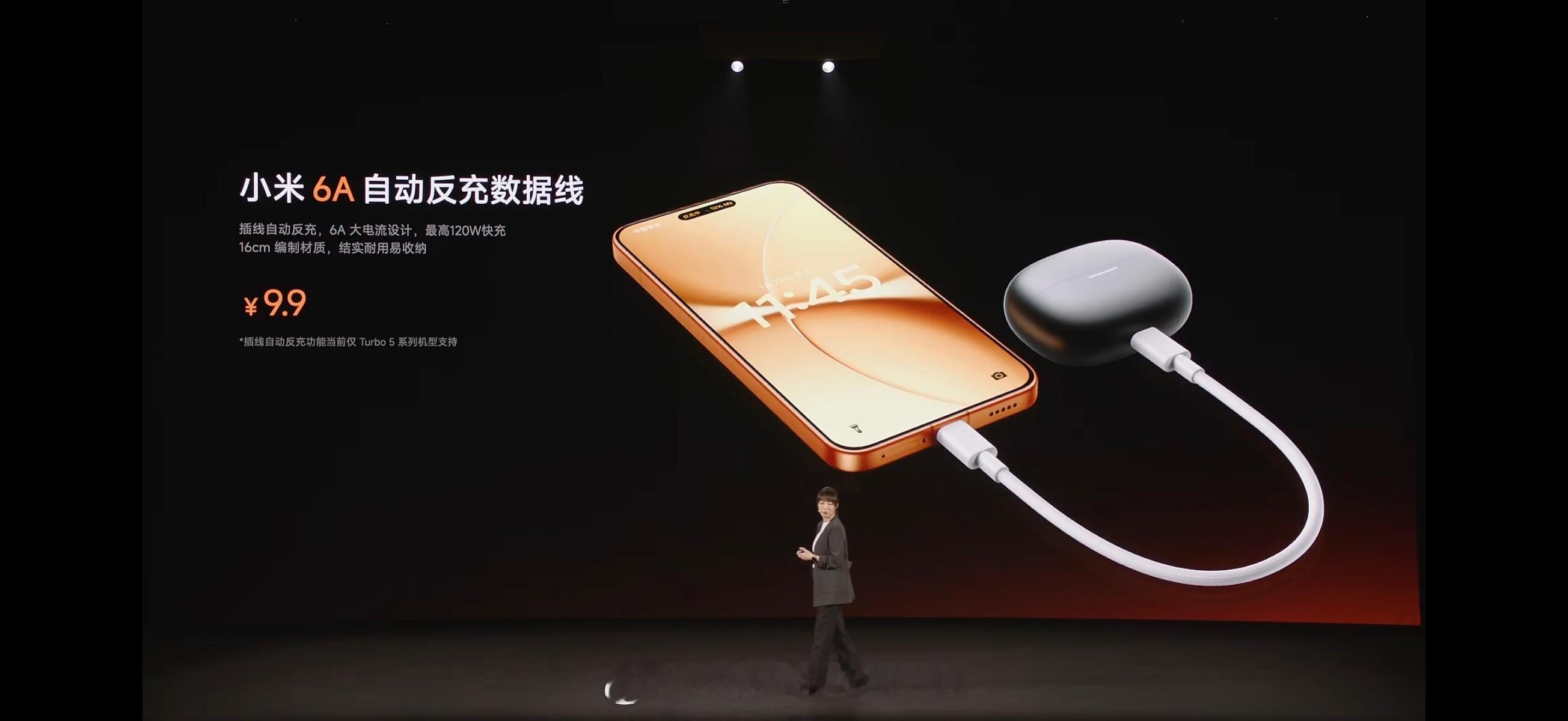 Turbo5Max真的把电池容量玩出花了,居然还做了一根专门的反冲数据线…不过也是真的,电池容量增大之后确实会带来一些额外的场景需求,无线反冲这个就特别适合我们这种外拍,可以给Pocket3充电什么的,真的香!红米Turbo5发布会