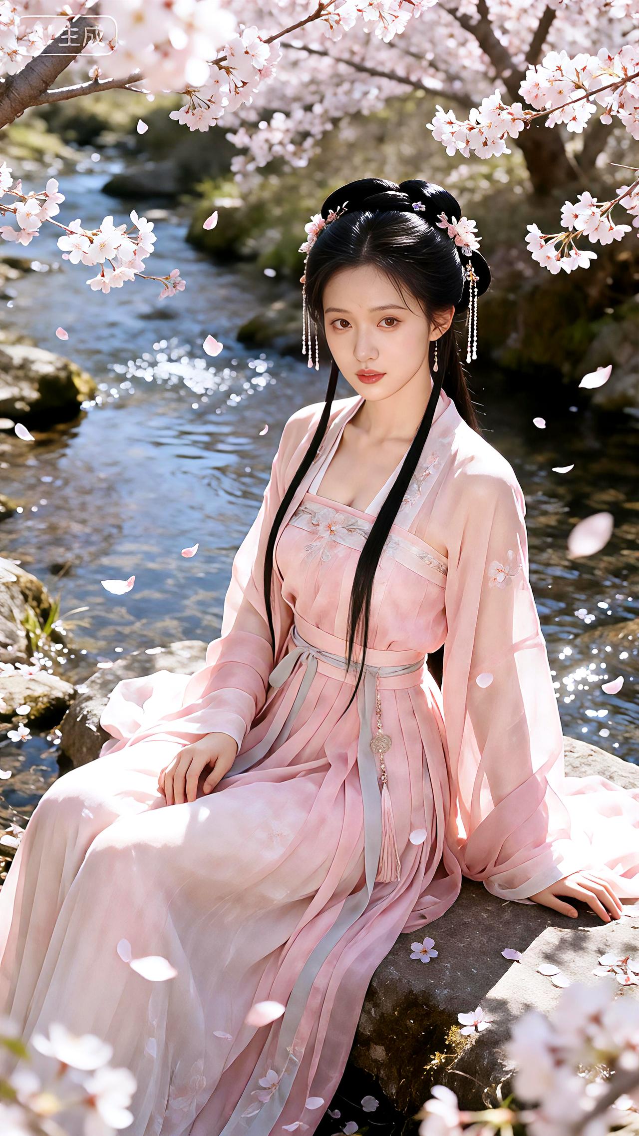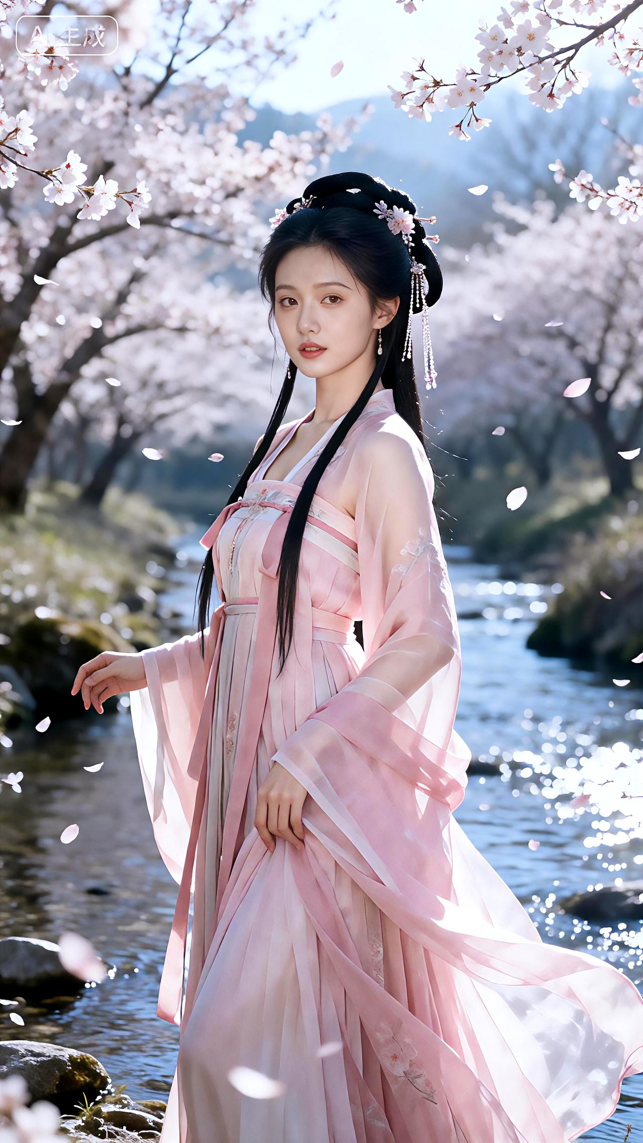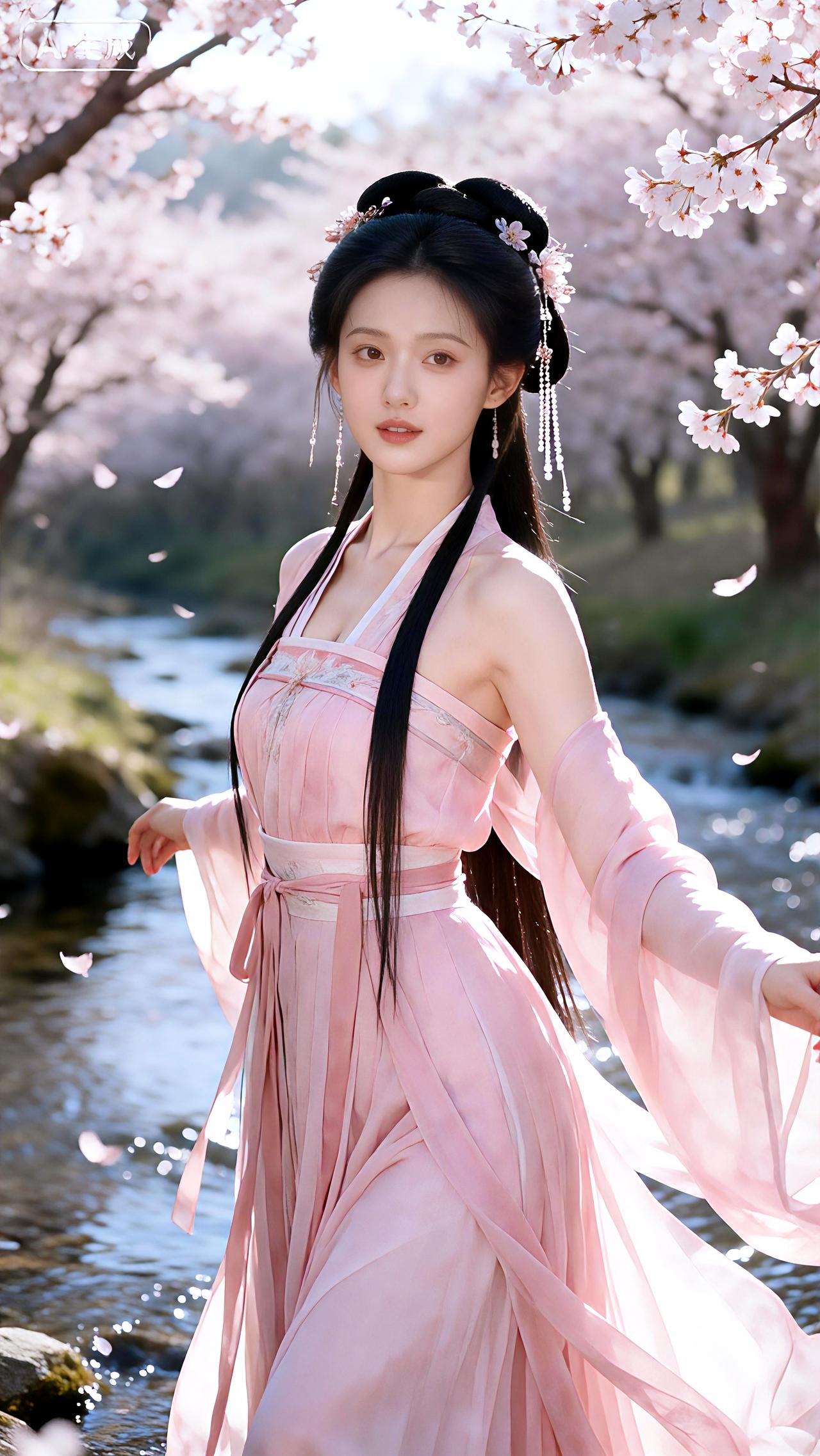 溪畔飞花逐粉裙,垂髻斜倚笑春风。 豆包 壁纸