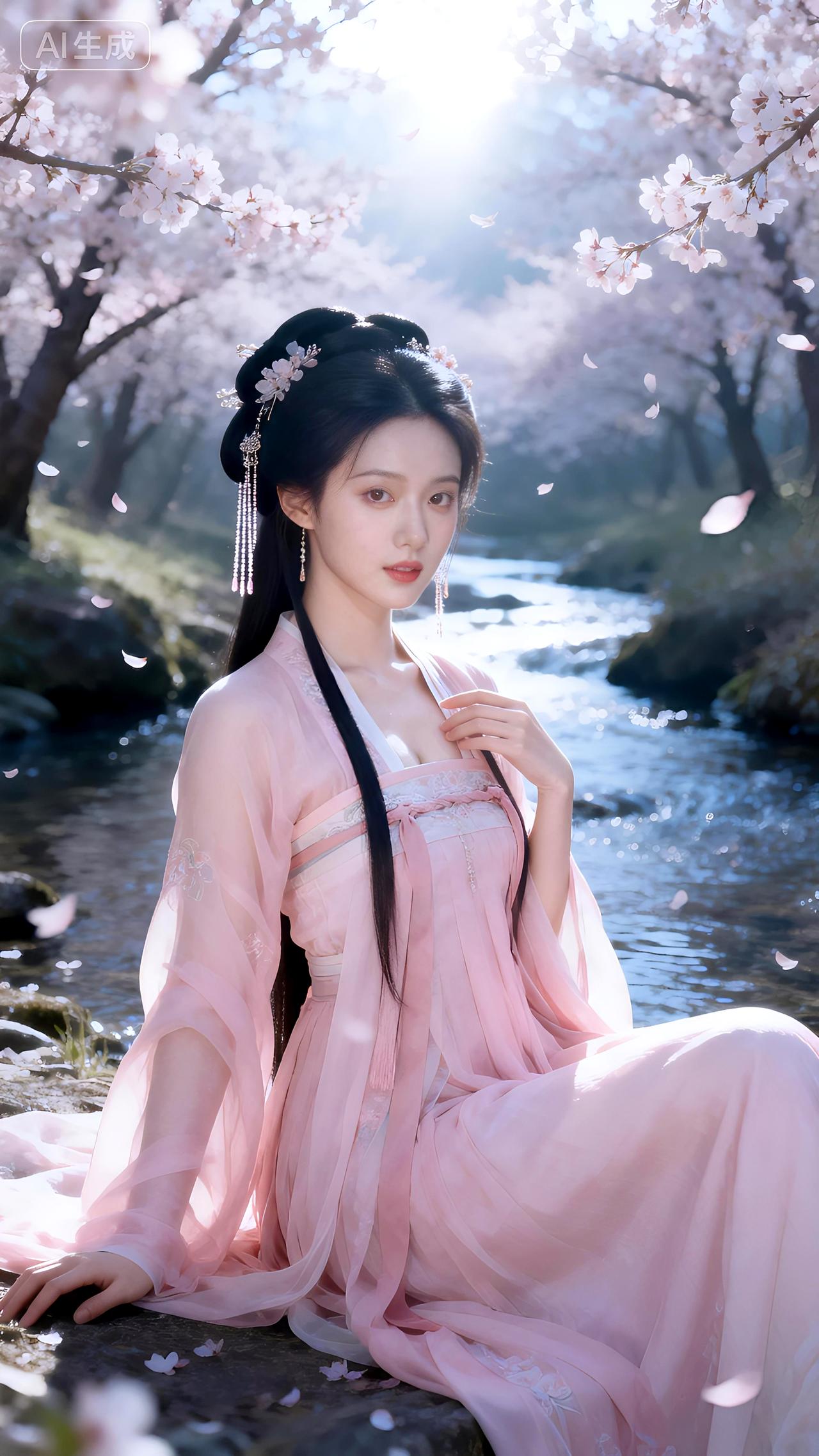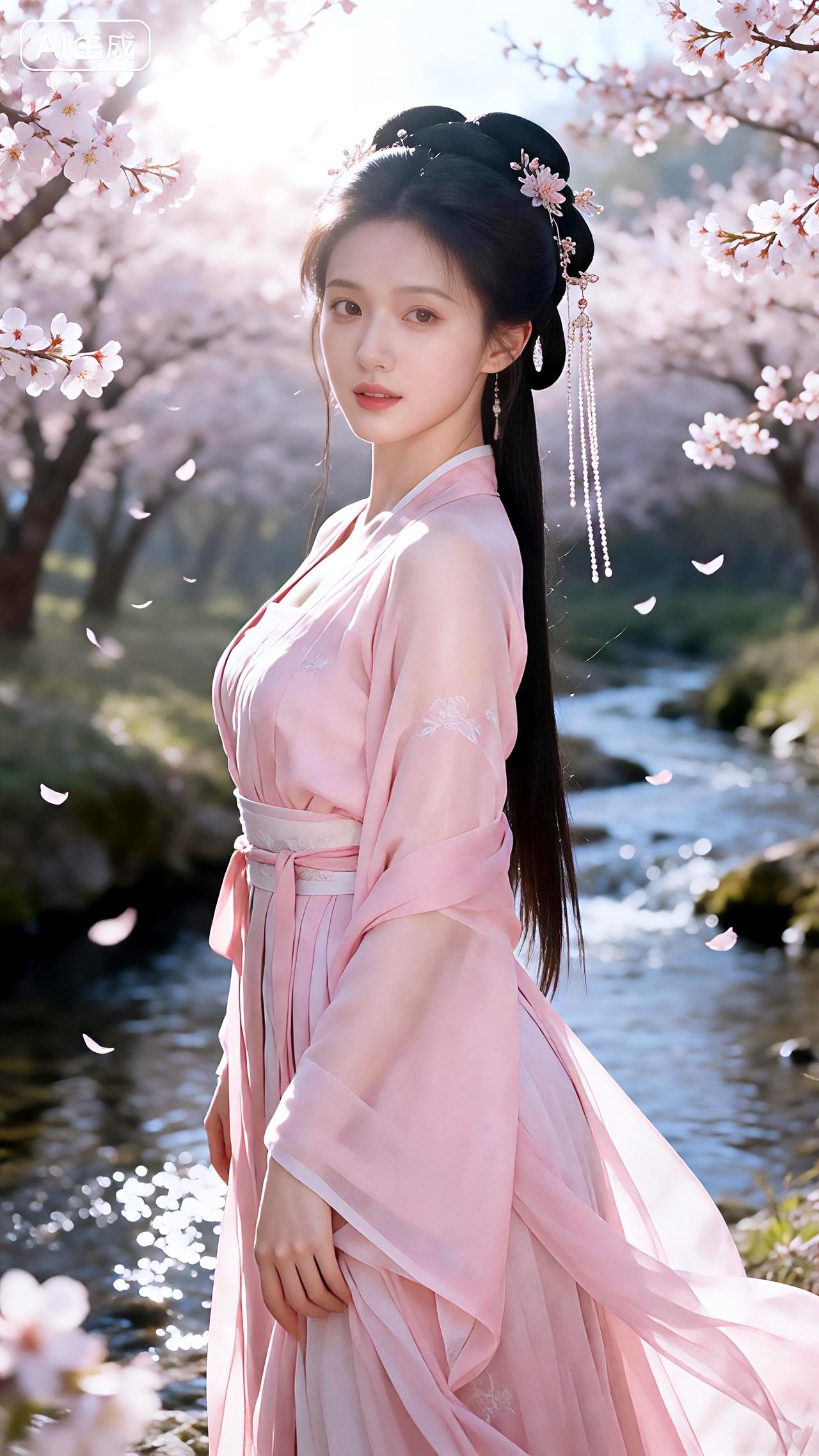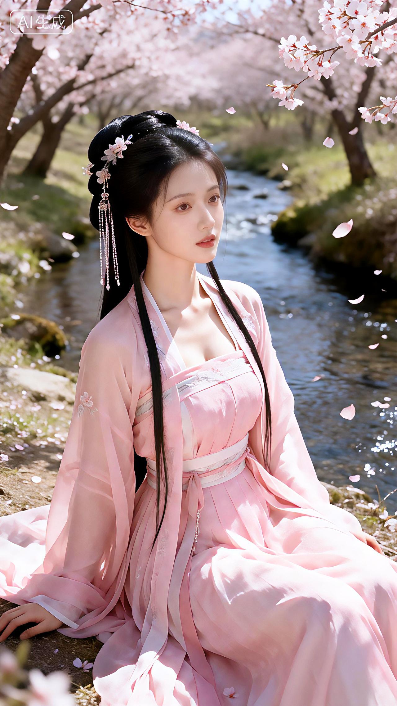 溪畔飞花逐粉裙,垂髻斜倚笑春风。 豆包 壁纸