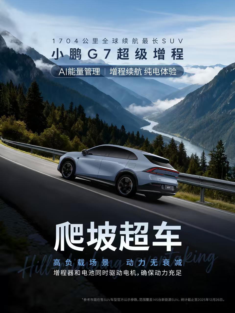太帅了太帅了,增程版G7在雪地里驰骋的感觉帅呆了。想不到小鹏G7连雪地都能拿捏,零下续航稳、动力足,还有专属雪地模式~1704km综合续航+430km纯电,文成看雪寒假必须安排起来!虽然还没赶上大雪实测(温州的雪你争点气呀~),但光是800V超充12分钟补300+公里、后备箱塞满冬天旅游的行李无压力这些细节,安全感直接拉满。最让我无语动心的是“全程纯电体验”,增程器工作悄咪咪,娃在后排看动画都不带醒的~已经脑补出裹着围巾开G7追雪的画面了!等下一场雪,必须带它去撒欢~小鹏G7增程续航纯电体验开小鹏G7去撒欢玩雪小鹏汽车