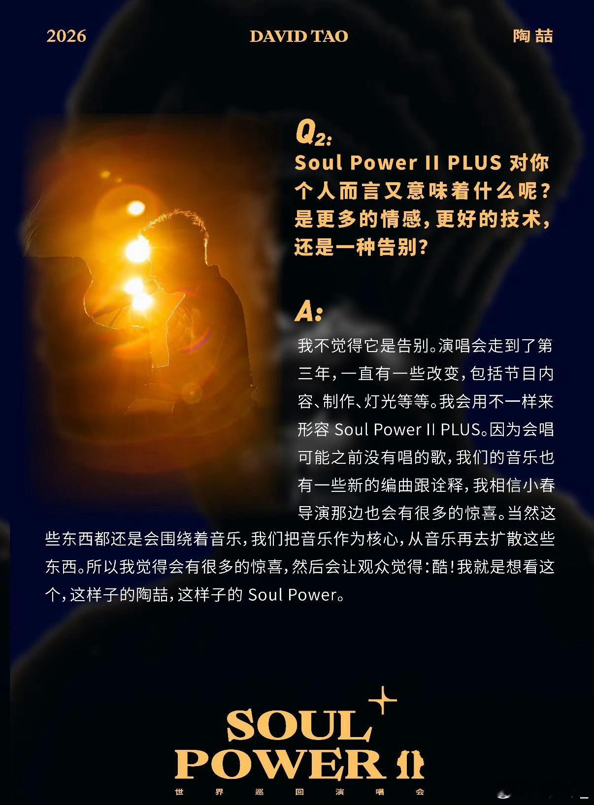 陶喆自曝巡演返场原因 巡演返场不是终点而是新开始,陶喆要带来第三代终极版,这样的好消息太让人激动,真的好想立刻就到三月奔赴现场。