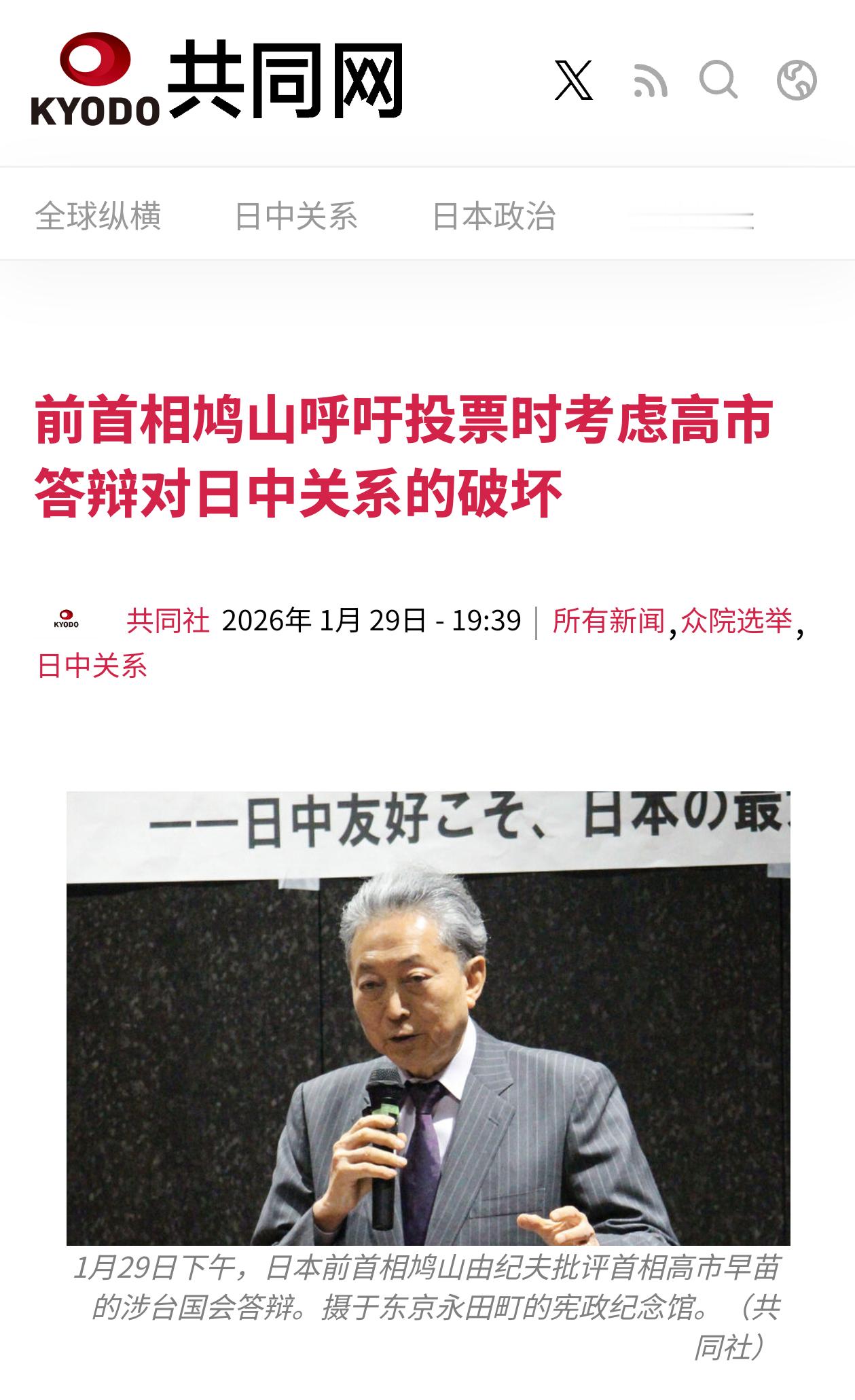 前日本首相鸠山由纪夫表示,高市早苗在国会的答辩破坏中日关系,不能让她继续担任首相,兵呼吁就这个问题来判断高市早苗的好坏,提醒选民在众议院选举时考虑高市早苗对中日关系的破坏。热点观点
