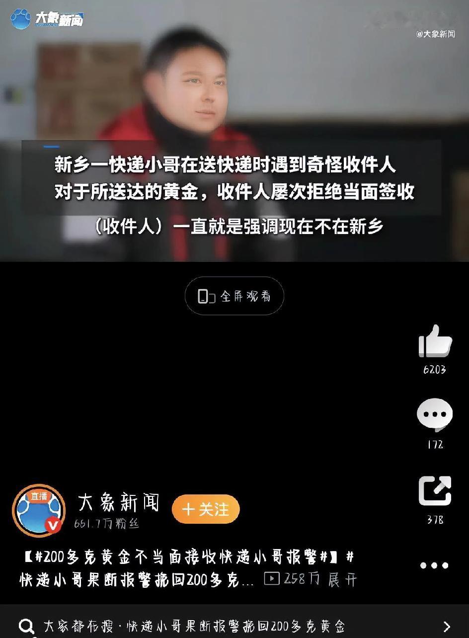 最近黄金价格一路飙涨,连骗子都开始打它的主意了。新乡一位快递小哥,就因为多留了个