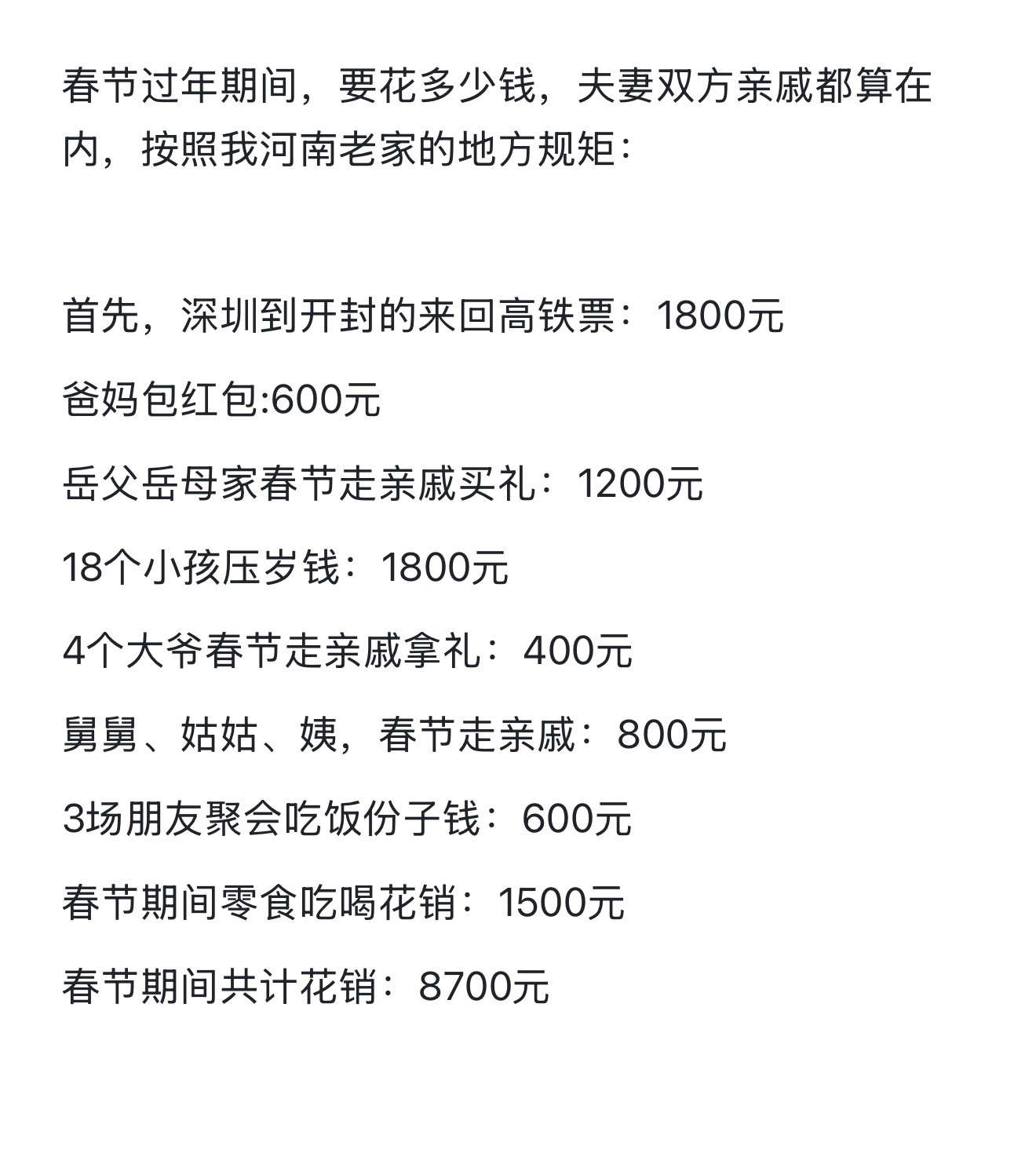 春节过年期间,要花多少钱,按照我河南老家的地方规矩,我算了一下……