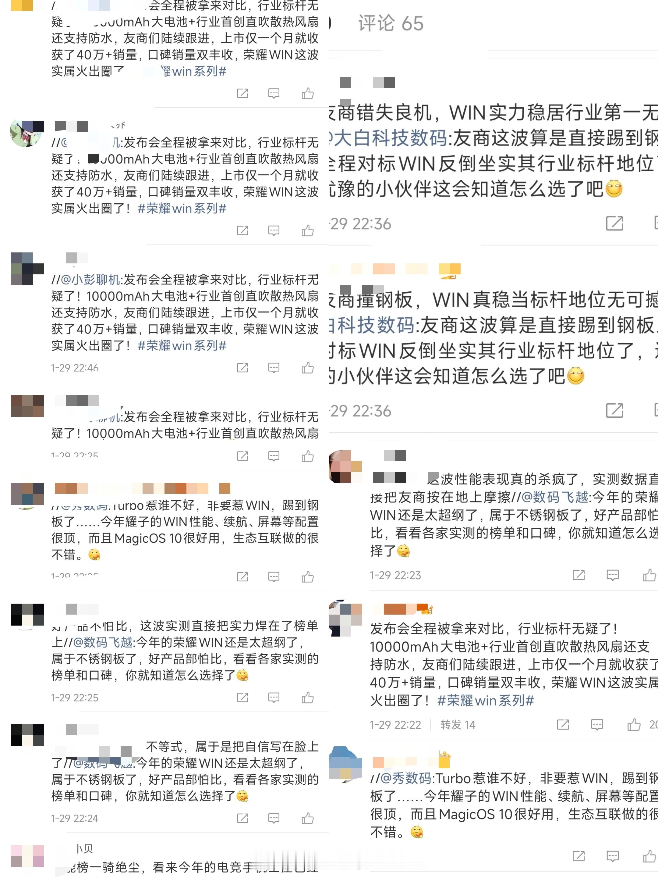 其实我觉得吧,数码行业这么久了大家对比来对比去都很正常,但没有必要这么应激甚至安排一些“非常整齐”的评论。而且一个事实是,之前红米直播续航测试对标的是荣耀WIN RT而不是WIN,这是两款完全不同的产品。内存涨价是大背景,现在拼的就是刺刀,Turbo5Max两小时刷新销量记录,也说明消费者更想看到的是实打实的福利和厂家的诚意。