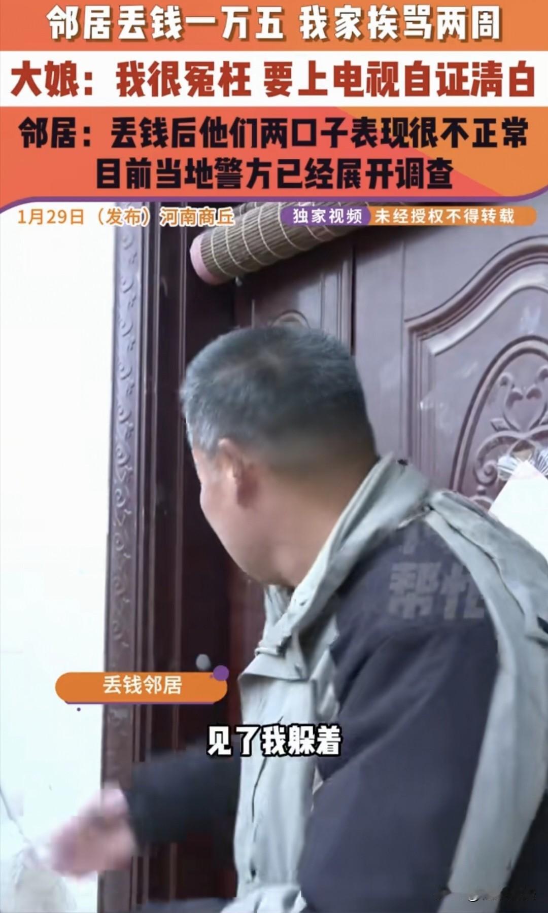 现时版,疑人偷斧?河南商丘,大娘的邻居家丢了15000块钱,怀疑是大娘家偷的,一