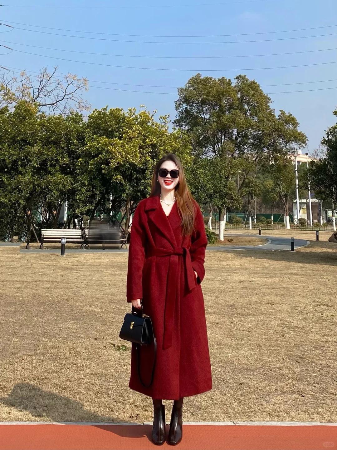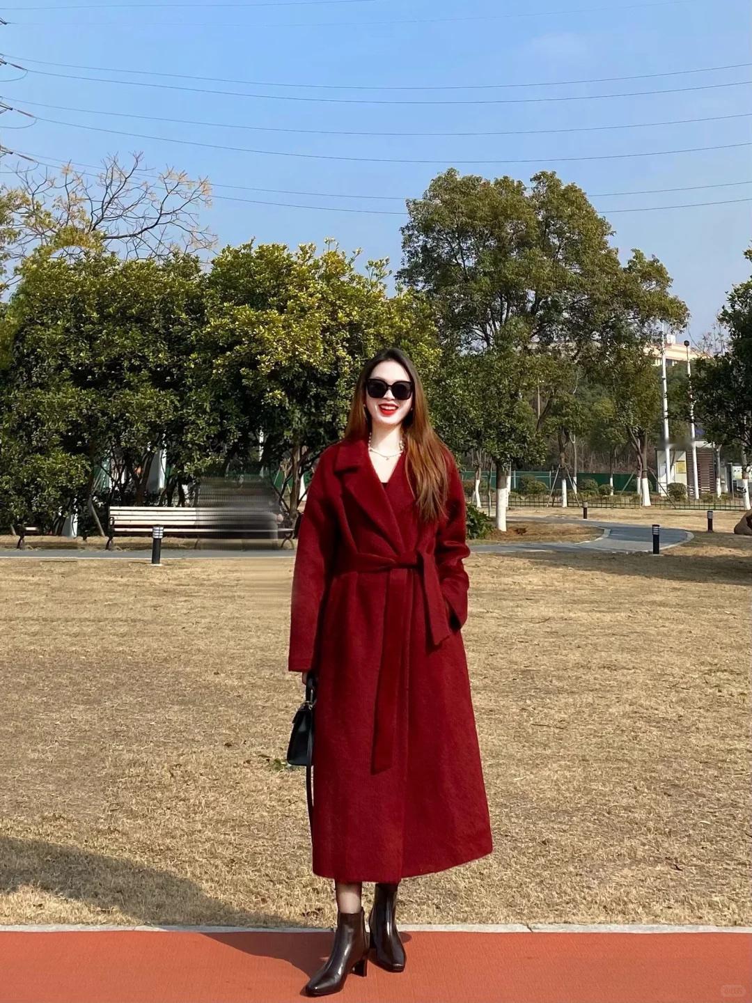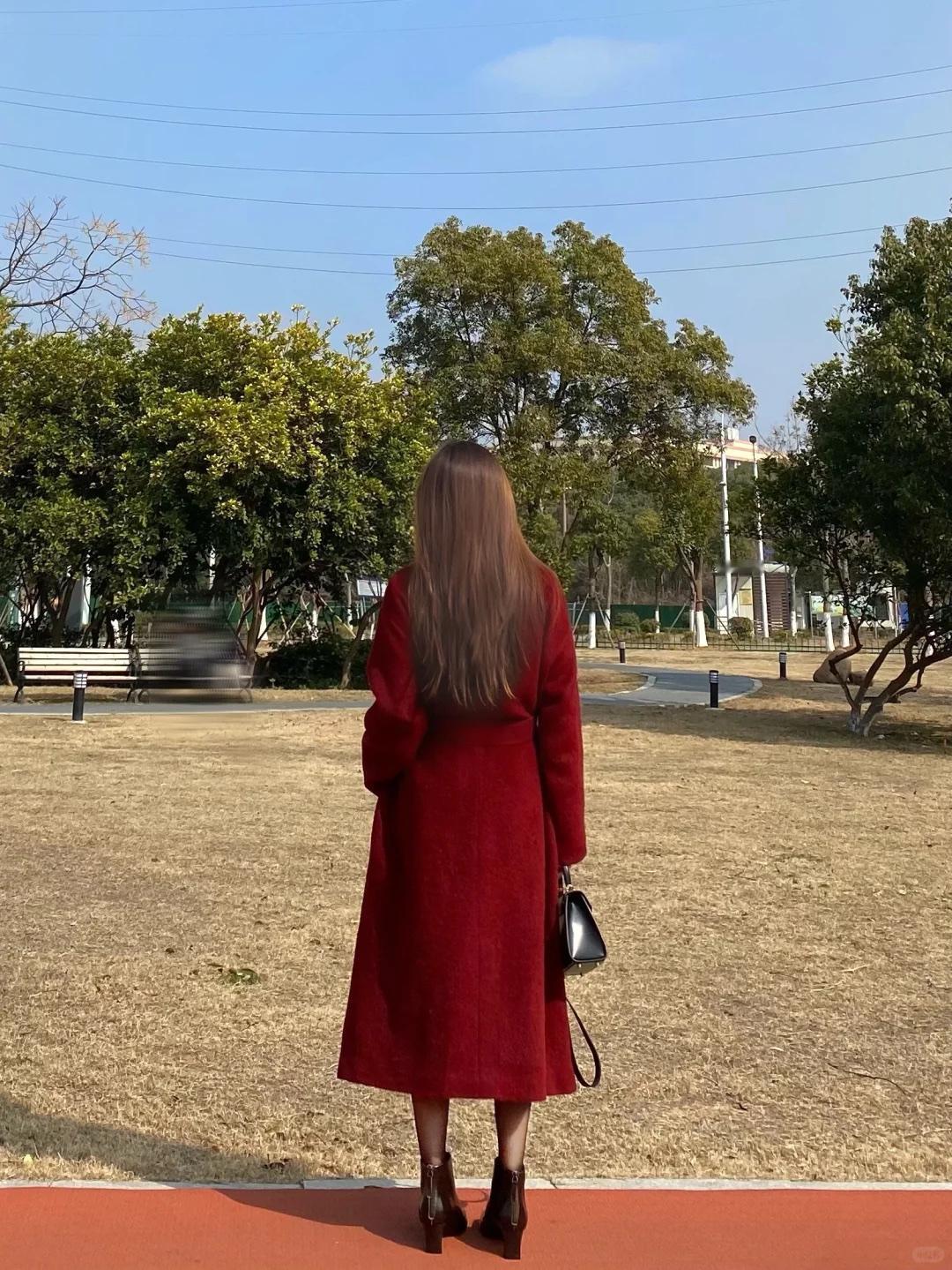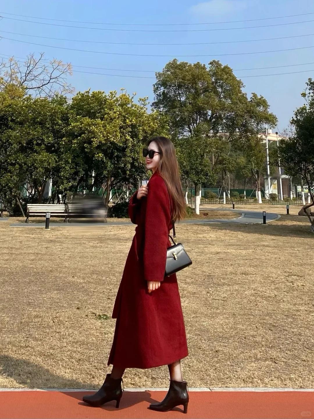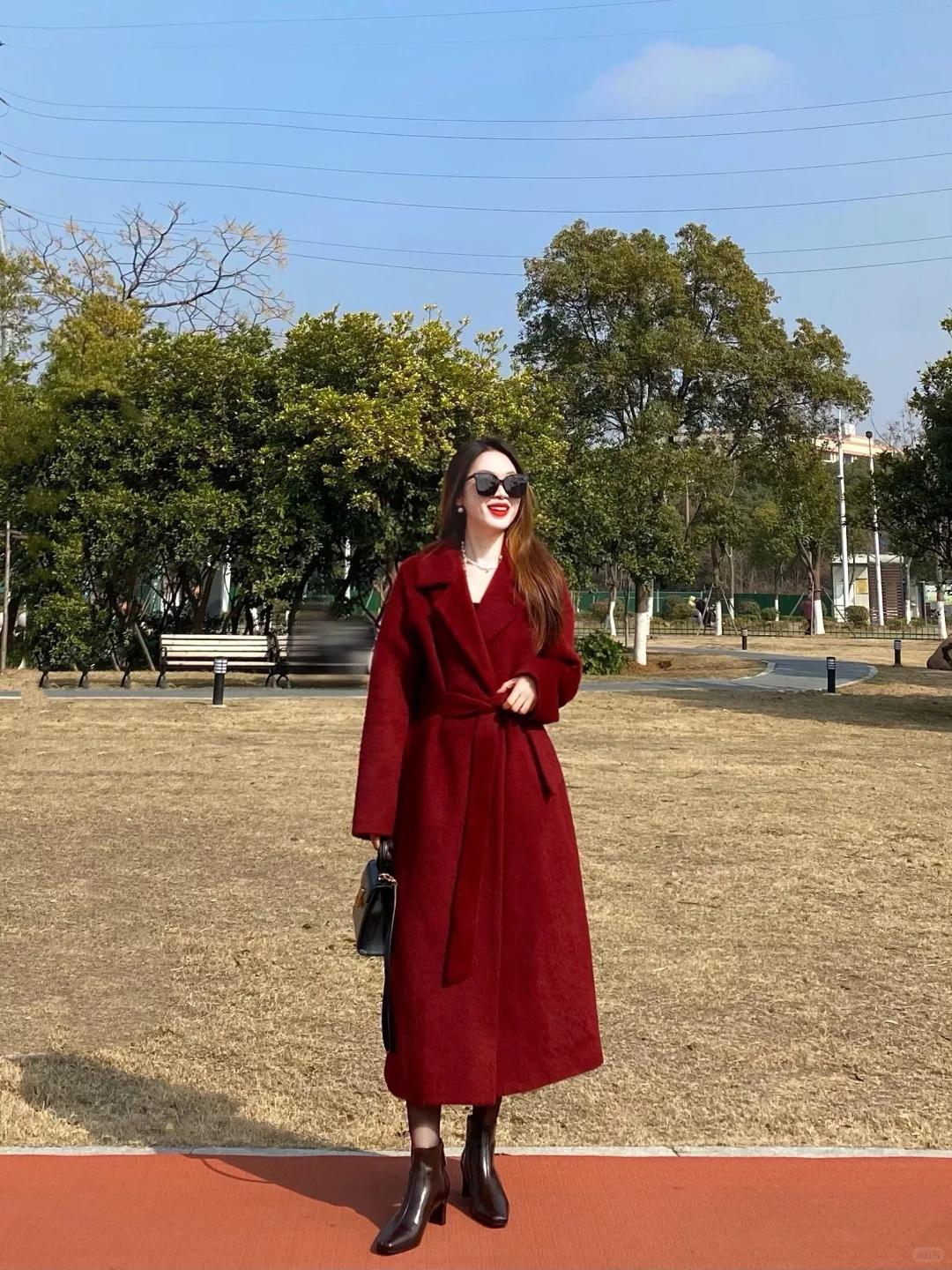 那就大大方方的漂亮~ 红色大衣 黑丝 短靴 新年战袍准备好了