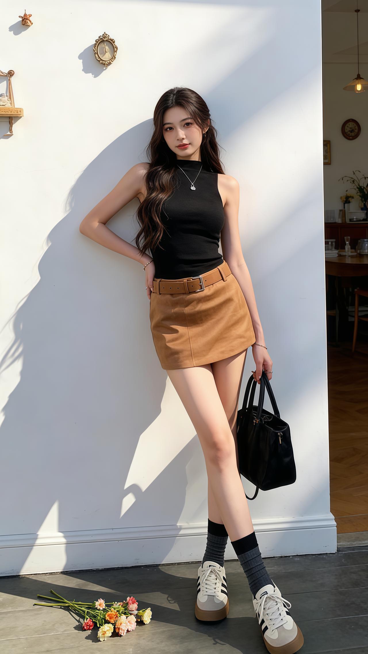 这套穿搭是温柔利落的黑蓝秋日风,把松弛质感与精致细节融合。黑色开衫自带温柔松弛感