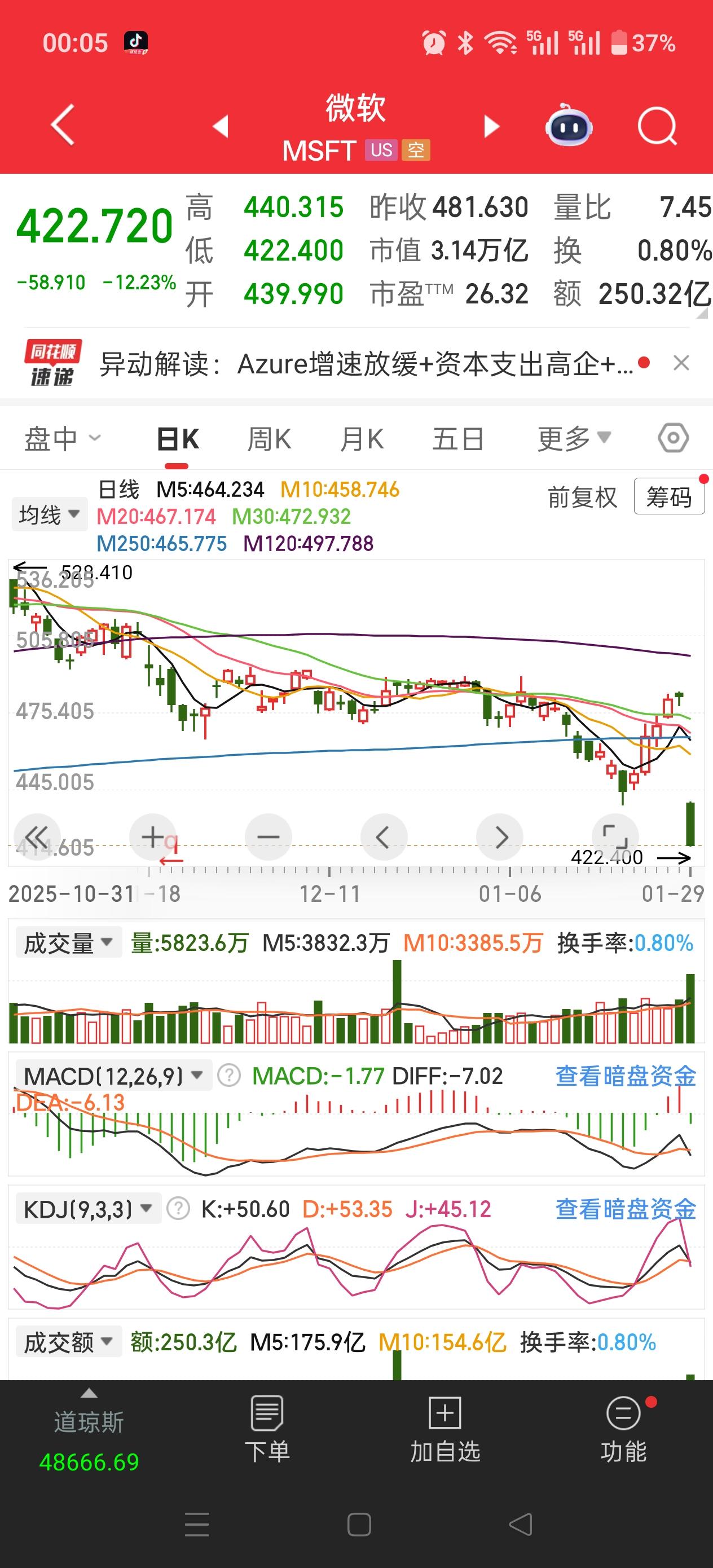 注意!注意!渡劫!渡劫! 明天大a渡劫! 又遇到美股不知道啥原因大暴跌了! 微软都跌12%了!不知道啥情况! 伦敦金,伦敦银也大暴跌! 明天大a好难啊! 我也不头铁了,商业航天我不敢碰了! 明天老老实实的管住手!