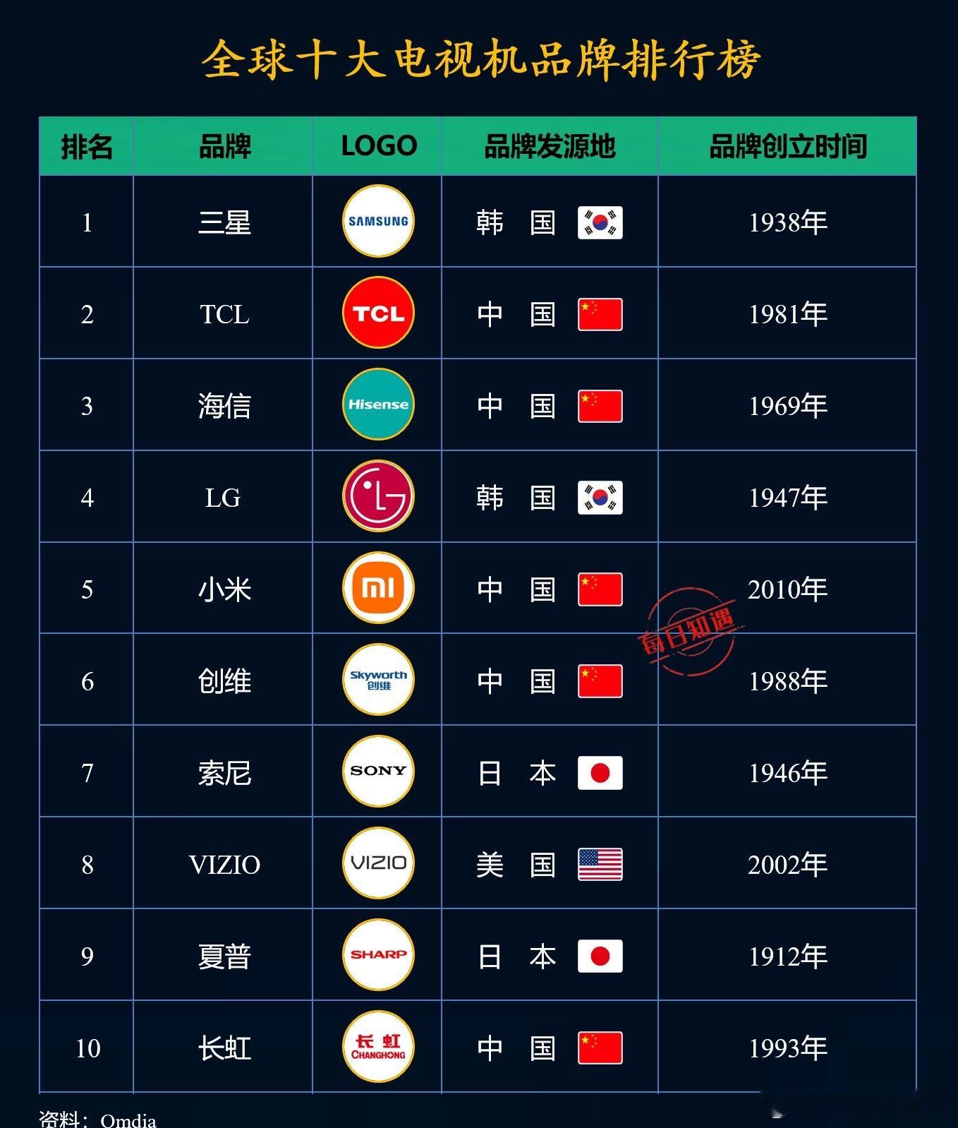 全球十大电视机品牌排行榜,有没有你家的电视品牌呢?