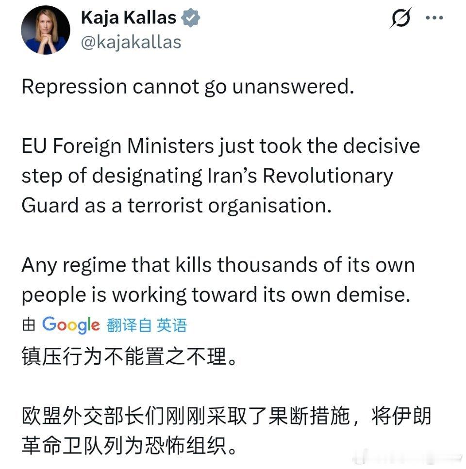 🚨突发:欧盟已将伊朗革命卫队列为恐怖组织