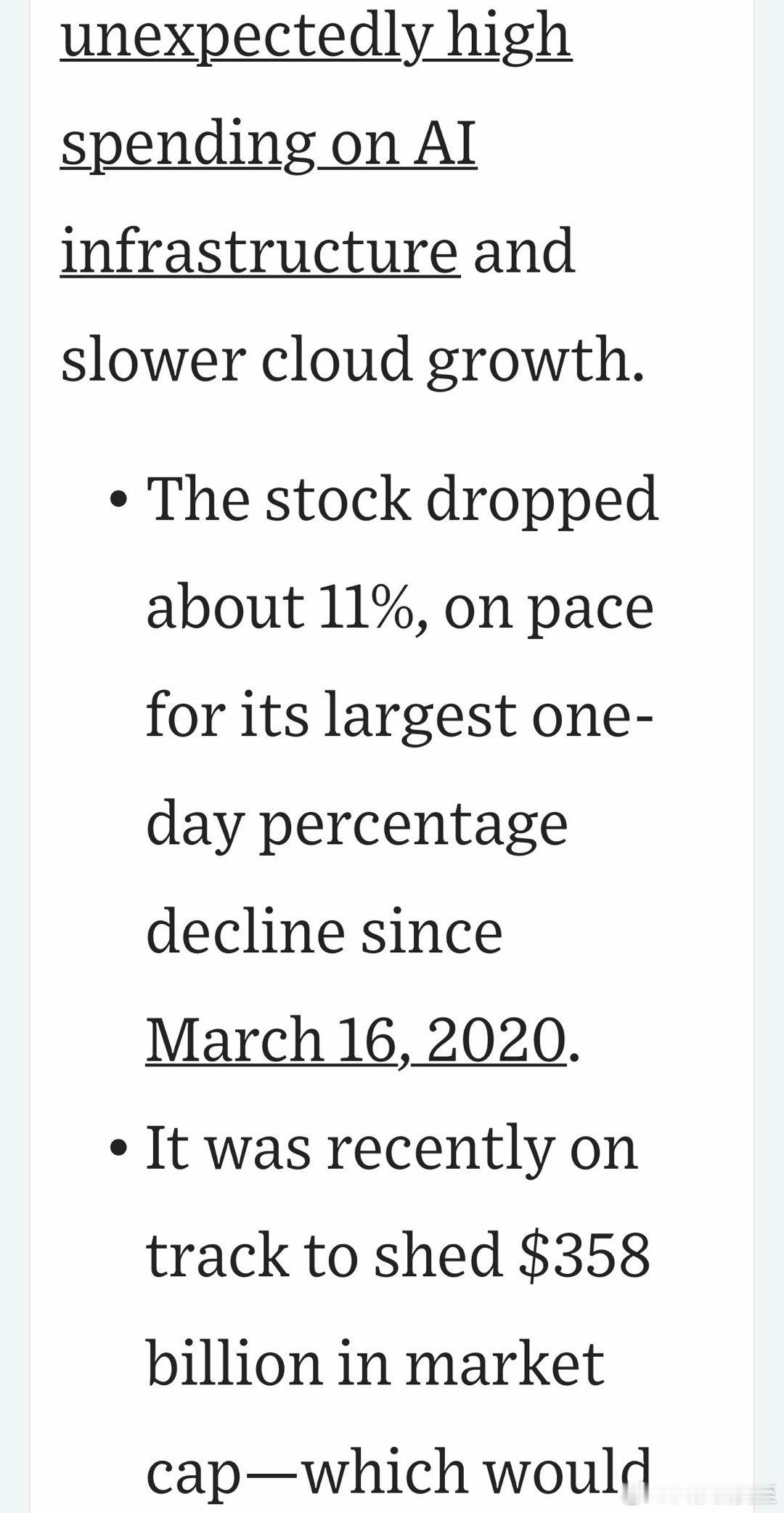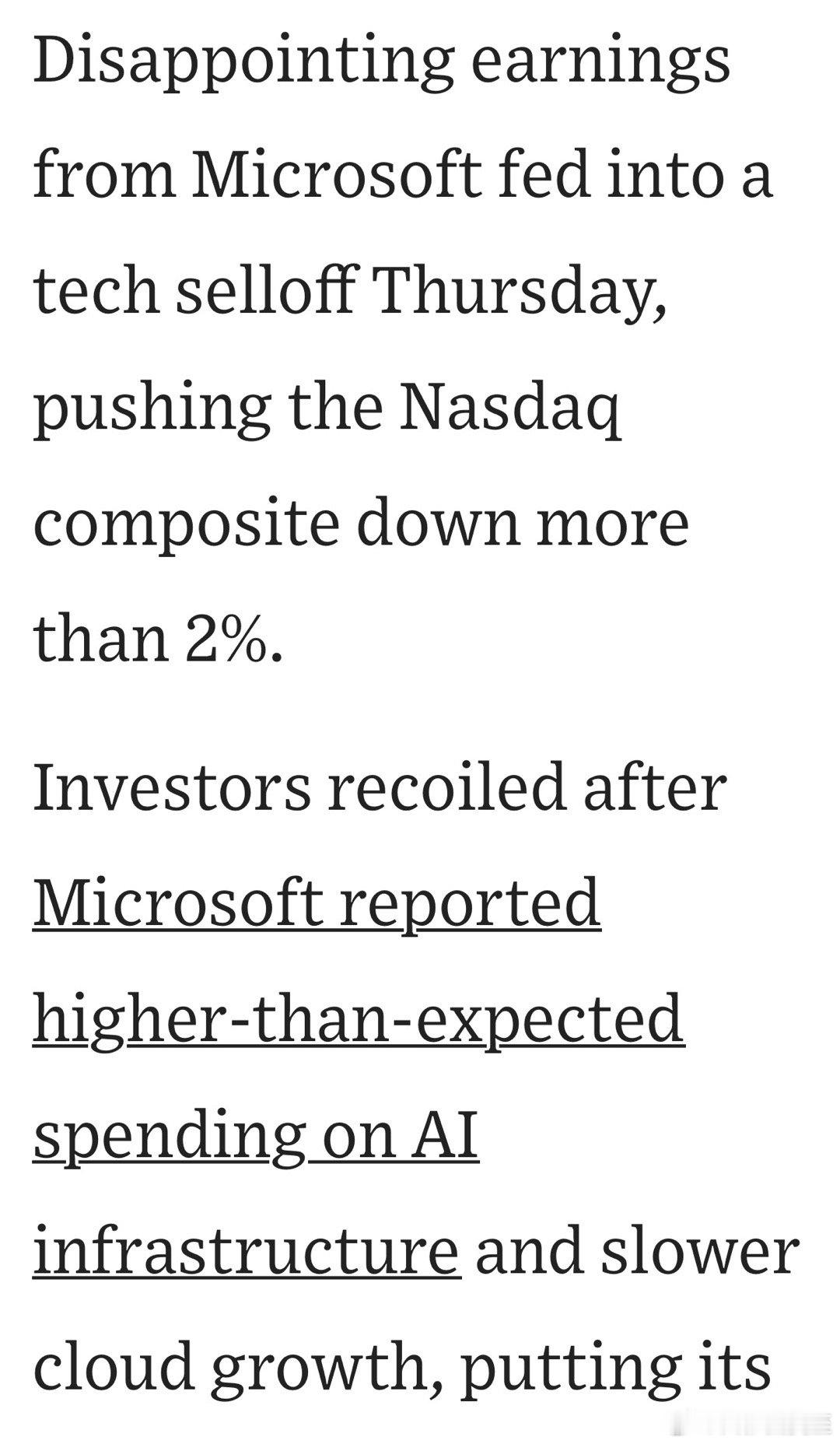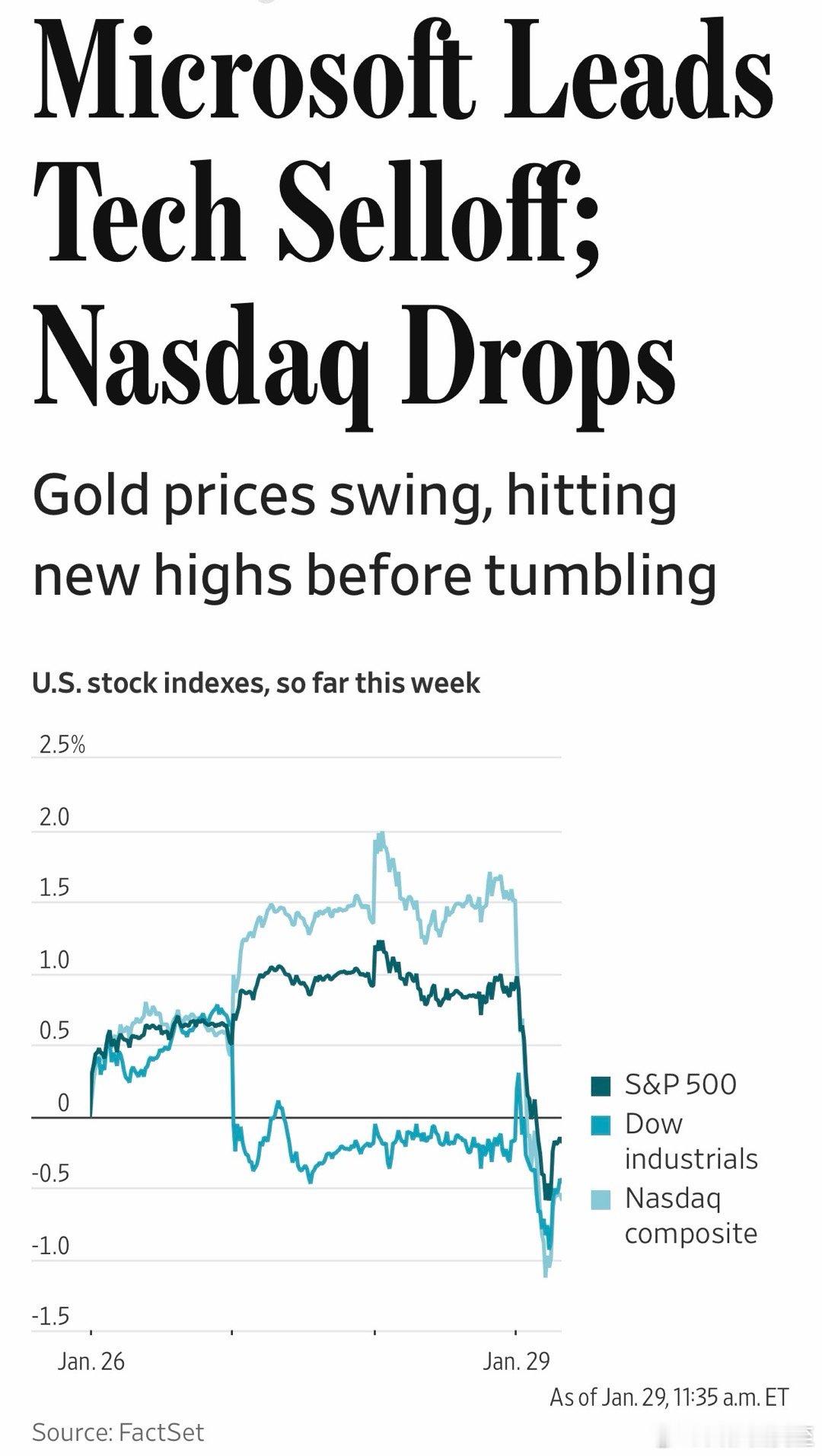 微软股票暴跌11%,新冠爆发以来最大单日跌幅;市值蒸发三千多亿,公司史上最高损失主要因为发布财报,市场普遍认为“在AI投资过高”、而云业务增长不及预期受微软影响,纳斯达克📉2%尤其软件类,例如Salesforce等