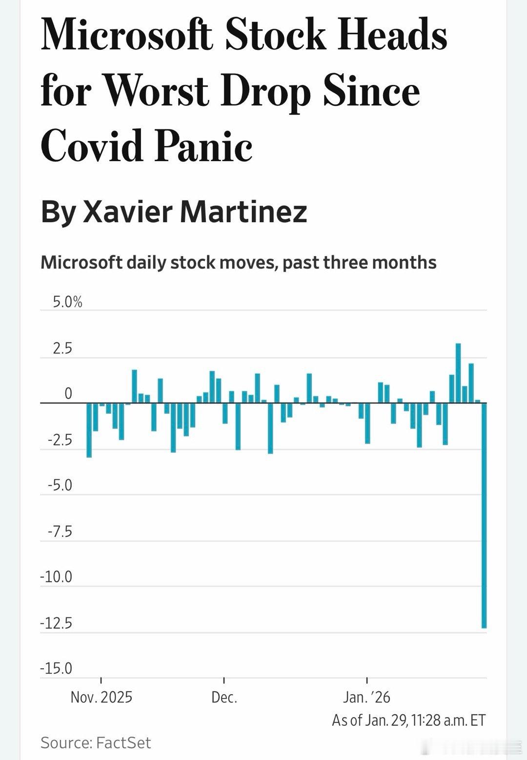 微软股票暴跌11%,新冠爆发以来最大单日跌幅;市值蒸发三千多亿,公司史上最高损失