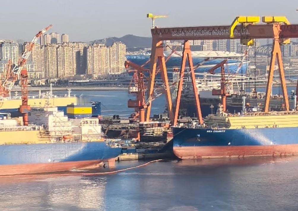 今日的004侧视图 前两天侧壁缺那一块又重新装上了,舰尾模块还在原地 图源小红书烽火问鼎计划福建舰