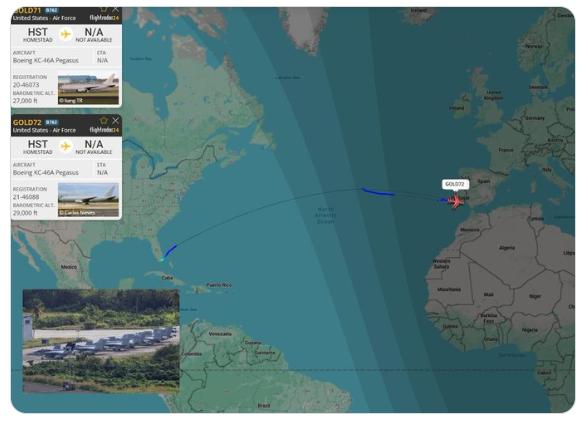 【据监测渠道报道,参与针对马杜罗行动的美国飞机正飞往中东。】