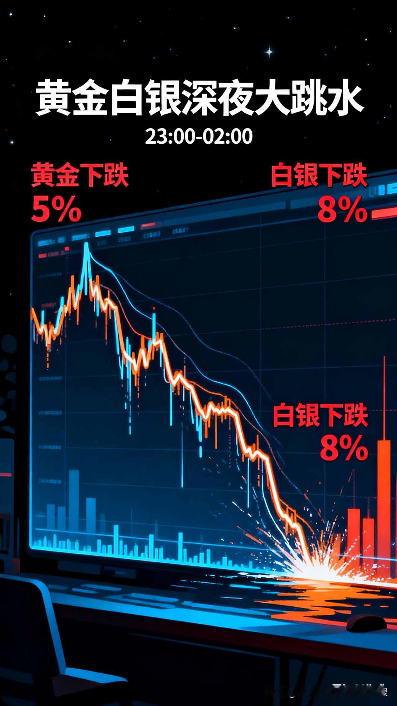 昨晚黄金白银直接深夜大跳水,跌得也太猛了!黄金单日跌超5%,白银更是暴跌8%创了