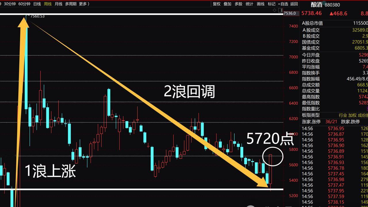 做白酒切忌不要随便看日线。日线都是一小波一小波的动弹。 只有看周线,才能看到明显的波浪趋势。现在正处于2浪回调的末期。要判断周线3浪开启,一定要站稳5720点。 现在是5738点,看起来已经突破。但今天才刚刚摸到,不能算有效突破,一定要确认站稳,才能代表3浪1的到来。 5年下跌都熬过来的兄弟,你记住我给的信号,这是真正单边上涨开始的信号。谨记:看周线,别看日线。 现在大盘一共3条线: 第一条线:小房房+白酒 【超跌】 第二条线:AI应用+商业航天+硬科技【科技】 第三条线:有色黄金+化工 【涨价】 当然,你也可以叫他们老登、中登、小登。 小登看不上老登,老登看不惯小登,中登左右不是人!这三条线互不相让,起来一个,另外两个就会原地跳水。