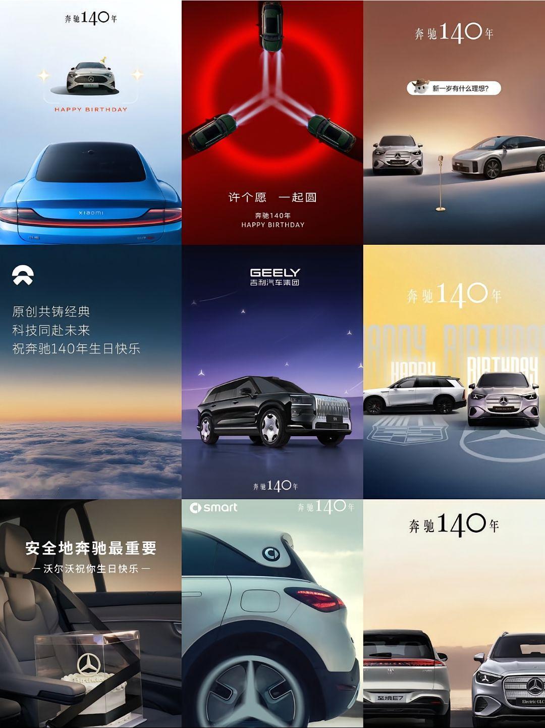 前几天奔驰140年大寿,各家车企祝寿海报要论品位,还得是蔚来。 态度真心真意,创意举重若轻。 和做人一样。