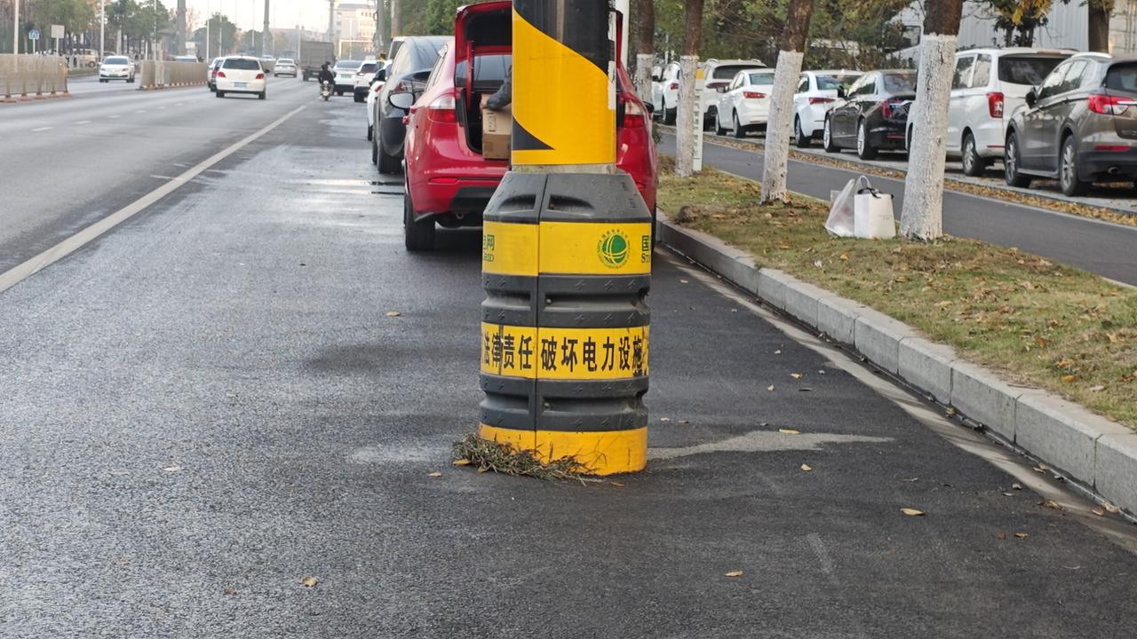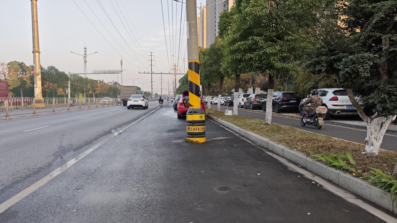 武汉市黄陂区盘龙城经济开发区,3年前完成了一条主干道的拓宽,双向4车道拓宽为6车道,马路名字叫腾龙大道,但可惜的是外侧两车道仍然有电线杆没有迁走,改造后的马路仍然只有4车道可以通行 电力单位在电线杆上涂了醒目的防撞标志,警示不要破坏电力设备,否则要负法律责任,但缺乏安全距离 假如司机夜晚撞上了电线杆,责任该如何划分呢