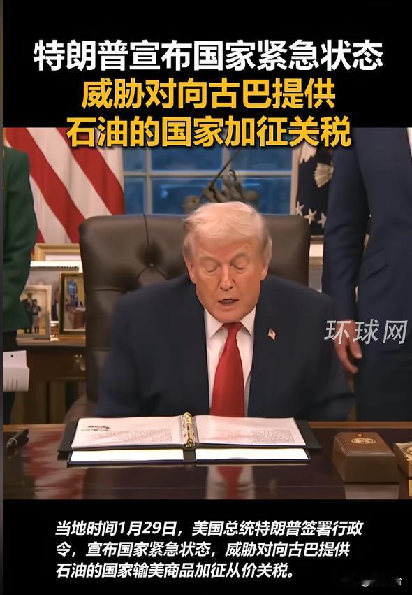 特朗普再掀风波!签令紧急状态,矛头直指古巴石油供应链 🚨 🇺🇸 突发!特朗普火速签署行政令宣布国家紧急状态,竟拿他国对古巴供油“开刀”,关税大棒直指全球能源贸易,背后藏着怎样的算计? 当地时间1月29日,特朗普正式签署行政令,宣称要对直接或间接向古巴提供石油及制品的国家,加征额外从价关税 ⛽。其直言此举是为切断古巴政权“能源命脉”,对所谓“掠夺行为”零容忍,将单边制裁再度升级。 这波操作实则精准针对墨西哥 🇲🇽。委内瑞拉供油中断后,墨西哥已成古巴最大石油供应国,而美墨贸易依赖度极高,特朗普此举无疑给墨西哥出了道“两难选择题”。滥用国家紧急状态搞单边施压,本质是霸权主义的又一暴露,国际社会早已反感这类“长臂管辖”。 💡 反转来了!特朗普并非真为“正义”,而是借古巴问题拿捏地区盟友,为美墨贸易谈判造势。且其任期内多次滥用紧急权力,此前就曾为控制委内瑞拉石油收入故技重施,算盘全打在自身政治与经济利益上。 墨西哥会妥协断供古巴吗?这场能源博弈还将引发哪些连锁反应?欢迎在评论区留下你的观点 ✍️ 特朗普签署行政令 美古关系 国际能源博弈 单边制裁的代价