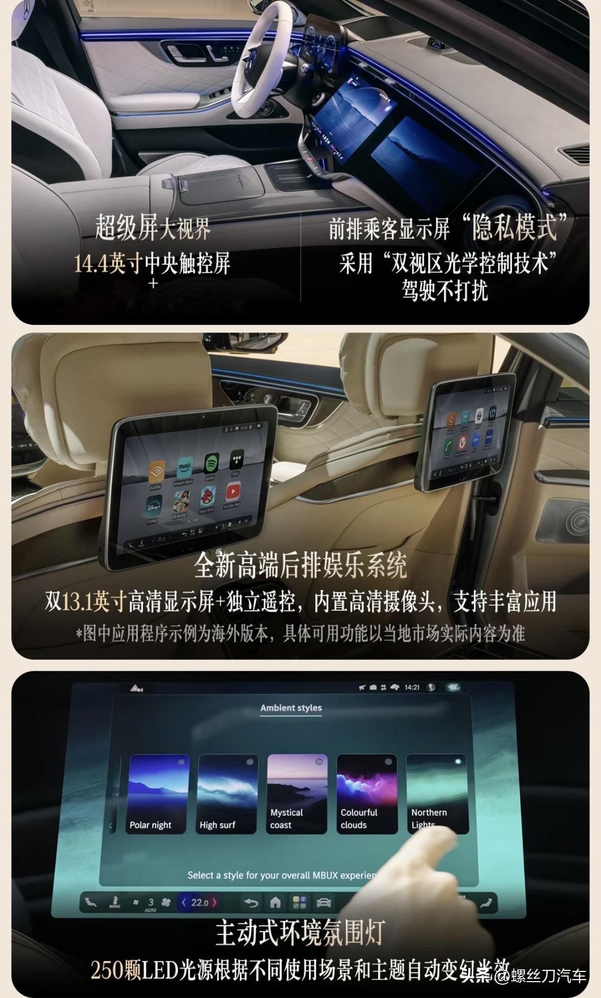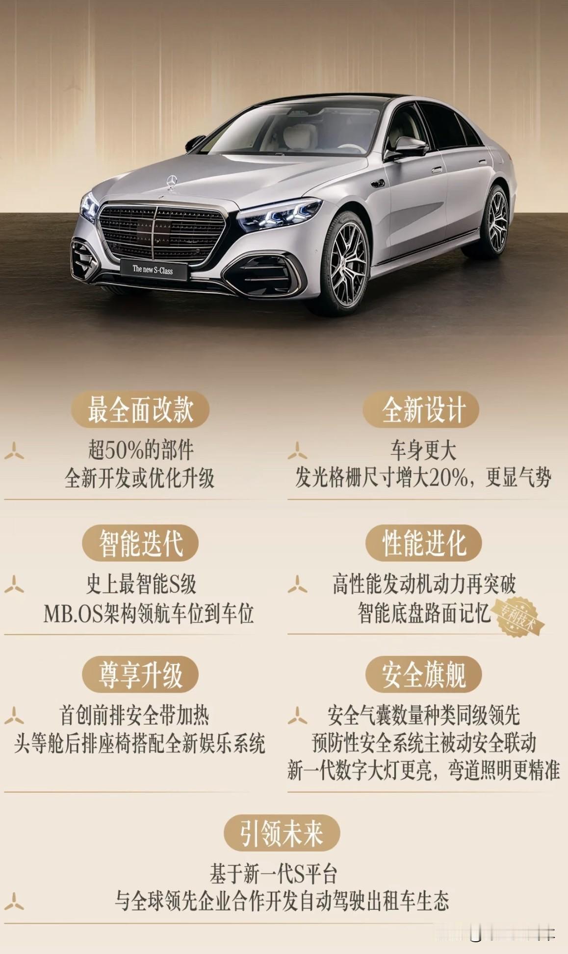 超50%的新部件,搭载最新科技,车标能发光!新款梅赛德斯-奔驰S级来了 不用多想,新款奔驰S级竞争对手依然会锁定宝马7系和奥迪A8L,宝马7系(计划2026年下半年发布中期改款车型)在2022年完成换代之后,水晶内饰确实令人眼前一亮,不过它的外观设计也引起了不少的讨论;而奥迪A8L(暂无准确换代信息,或要等到2029年)则是在2017年完成换代,2022年进行中期改款。从产品力上来说,两个竞品车型都进入到了疲软期,新款S级堪比换代的进化自然也会加大它的优势。