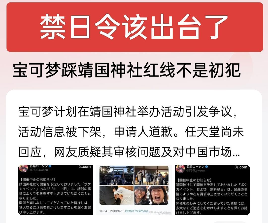宝可梦又踩靖国神厕红线!光道歉下架可不行,必须对其进行封杀,国家应该出台相关禁令,绝不能纵容这种触碰民族底线、伤害国人情感的行为一再发生。靖国神厕供奉着双手沾满多国人民鲜血的战犯,是历史正义的污点,是人类良知的禁区,任何企业、任何作品,都没有资格以“疏忽”“失误”为借口,挑战我们铭记历史、缅怀先烈的底线。宝可梦作为全球知名IP,拥有庞大的受众群体,其中不乏青少年,此次触碰红线绝非偶然,轻飘飘的道歉和临时下架,不过是为了保住市场的权宜之计,根本不足以弥补对民族情感造成的伤害,更无法杜绝后续类似事件重演。 这种无底线的操作,本质上是对历史的漠视,对受害民族的不尊重,若不从严惩处、坚决封杀,只会让更多境外企业觉得,伤害中国人民情感的成本极低,道歉就能了事,进而肆无忌惮地试探底线。所以,仅仅封杀涉事IP远远不够,国家理应出台更严格的管控措施,明确划定涉及历史敏感问题的红线禁区,对所有境外文化产品、娱乐作品实行更严苛的审核机制,凡触碰历史红线、伤害民族情感的,一律坚决下架、永久禁入。同时,更要推动出台相关禁令,对屡次挑战底线、毫无敬畏之心的境外企业和品牌,实施行业封杀、市场禁入,让其为自己的错误付出惨痛代价,让其不能心存任何侥幸。 铭记历史不是延续仇恨,而是为了不让悲剧重演,捍卫民族情感不容半分退让。那些试图模糊历史、触碰红线的行为,永远得不到国人的原谅,也终将被市场和时代抛弃。唯有拿出零容忍的态度,用强硬的手段筑牢底线防线,才能守护好我们的历史记忆,才能让所有境外企业明白,尊重中国历史、敬畏民族情感,是进入中国市场的唯一前提,没有例外,更没有商量的余地。