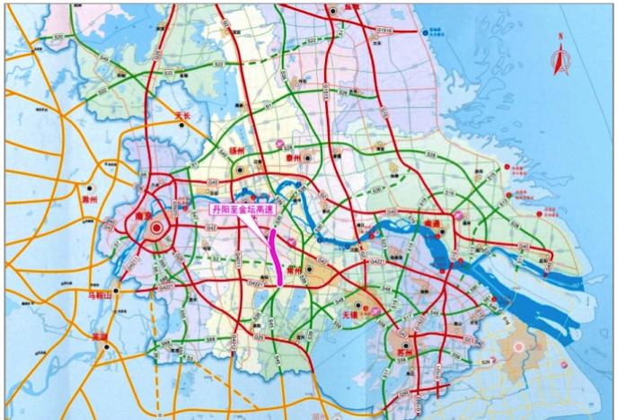 【丹阳至金坛高速公路新建工程】正在抓紧推进,建设工期48个月。项目全长约41千米,概算投资约146亿元,采用双向六车道标准建设,设计时速120千米。起于丹阳新区枢纽,对接镇江至丹阳高速,途经丹阳东,珥陵,金坛东,嘉泽,止于金坛经开区枢纽,对接常溧高速。设置互通立交7座(丹阳新区、金坛经开区枢纽,皇塘、金坛经开区、华罗庚高新区互通等),桥梁24座。项目的建设有利于完善区域交通网络,构建新的南北运输通道,缓解过江交通压力,助力丹阳与金坛以及宁句常宜协同发展,促进长三角一体化发展。