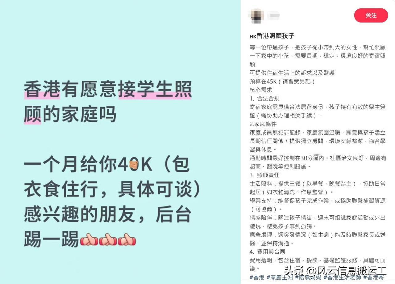 内地家长找香港家庭照顾帮忙孩子,4万一个月,引起热议 !