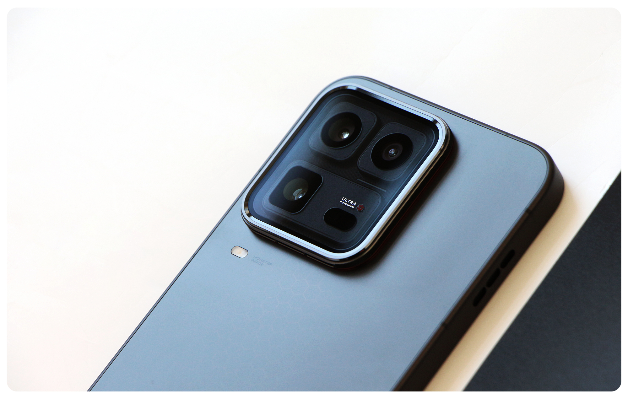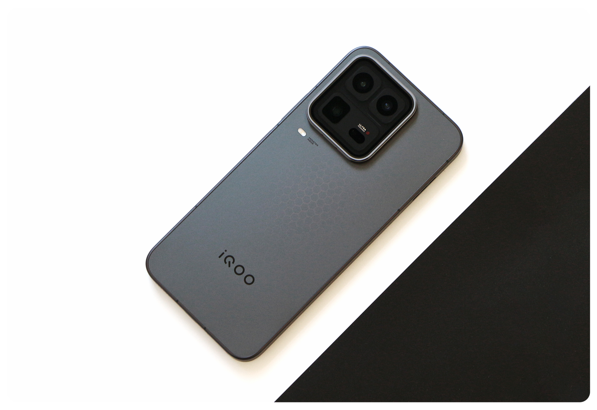 昨天拆机器第一时间拍了一组 iQOO 15 Ultra 【2077】这次 iQOO 是做了黑白两种配色就像大家看到的这样它的黑色并不是哪种特别纯粹的黑整体会显得比较有金属感细节处理上其实也是一样的思路比如后盖做了很多蜂巢状的浮雕纹理相机 Deco 外围是有一圈高亮铜色项圈所以无论正面还是侧面看过去整体都是非常硬核的大家觉得黑色这一版怎么样?iqoo15 ultra