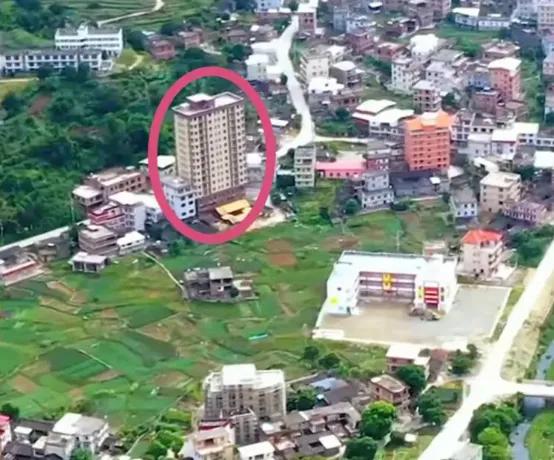 这简直是给整个家族盖了个垂直村落!最近,福建泉州一栋15层的大金楼突然火了。网友拍下视频时惊掉下巴!周围全是矮楼,唯独它拔地而起,还自带电梯,车库,墙上镶着金灿灿的三个字!大金楼。 楼里住的周姓家族,四世同堂挤了20多户,百来口人。70岁的周大爷说:“十年前拆了老宅,一大家子联合申请地基盖楼,现在每户200平米,过年热闹得像春运!”这种集资盖楼模式在福建农村早有先例,比如南安梅庄村2009年就搞过村民集资电梯房,既省地又省钱。 但为啥现在盖不了这么高了?安溪县2023年新规明确。自建房限高3层,15.5米。镇政府回应:“当年多户共用一地,政策宽松,现在必须按新规来。” 有人羡慕家族团结力拉满,也有人质疑是不是钻了政策空子?早在2010年,福清就出现过“最牛违建”闹剧,房主扬言要盖15层卖钱,最终被叫停。 其实,“大金楼”背后是农村住房矛盾的缩影。家族聚居的传统观念遇上土地紧张的现实,催生了这种向上要空间的无奈选择。福建近年大力推广农民公寓节约用地,但如何平衡人情味与政策红线,仍是难题。 从抬房搬家的贵州村民到福建的高楼家族,中国人对“家”的执着从未改变。只是,当传统互助遇上现代法规,农村的屋顶还能撑多高?