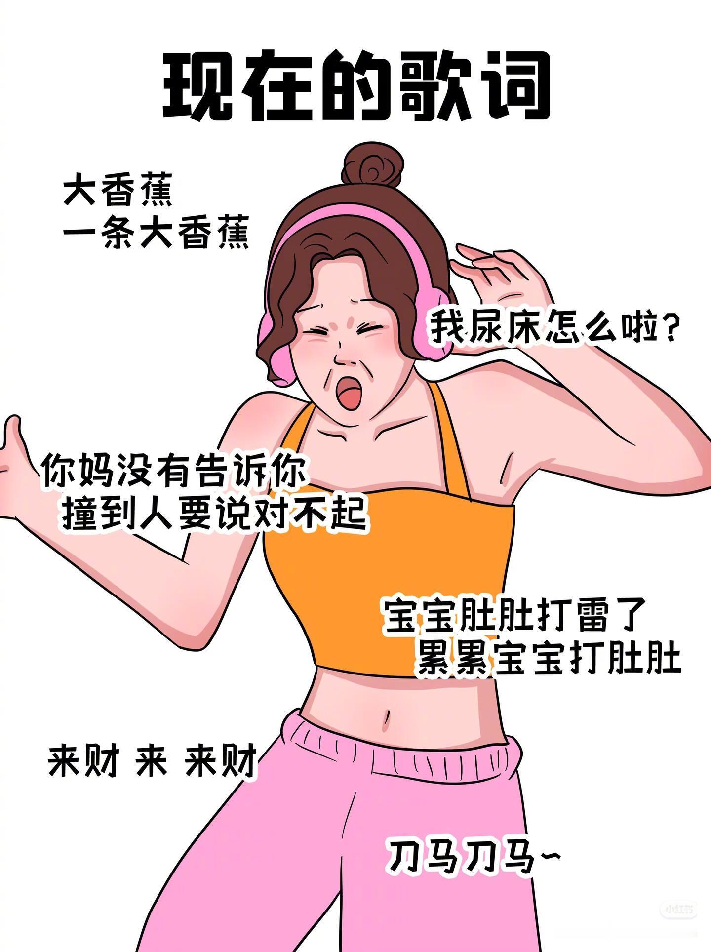 以前写歌vs现在写歌以前的歌词:有深度直击人心,现在的歌词:不知所云。