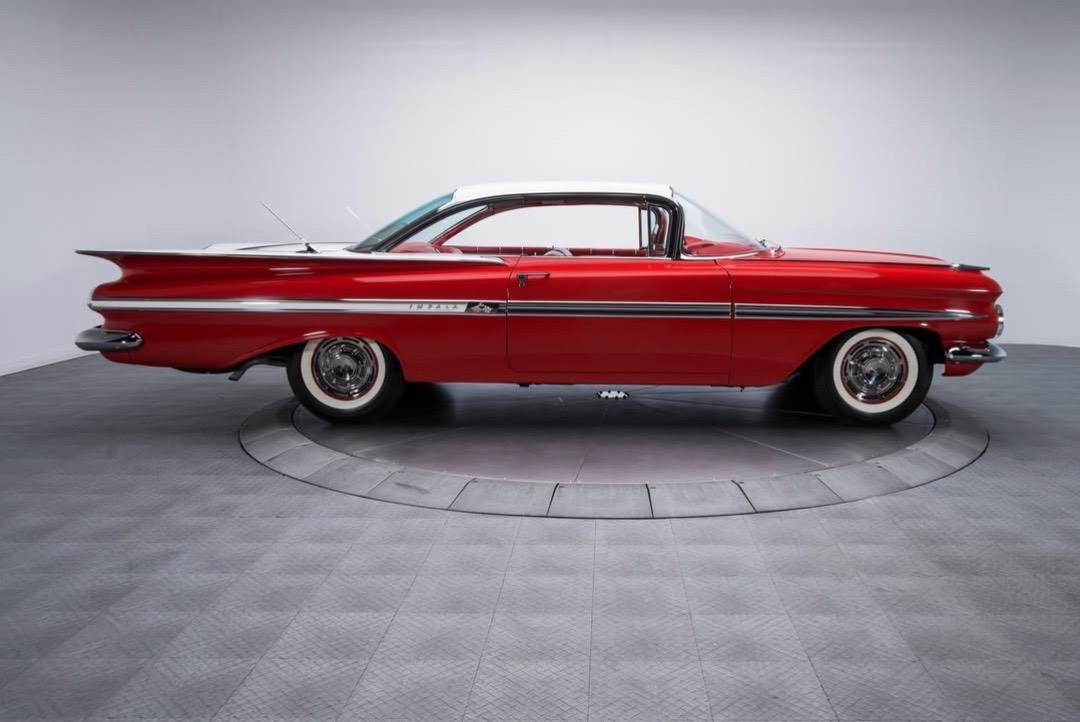 1959年雪佛兰(Chevrolet)Impala以大胆的姿态登场,作为1959款(第二代)产品,它通过更低的车顶、更宽的车身和全新的X形车架,重塑了大尺寸美式轿车的比例与乘坐感。 动力配置极具选择性:标配为约135匹的直列六缸;基础V8为283立方英寸(约4.6L)、185匹,另有多款283与348大排量V8可选,最高马力可逼近330多匹,既能满足悠然巡航,也能支持激进改装的欲望。 视觉上,1959款的扁平外伸尾鳍、泪滴形尾灯与大量镀铬饰条,是50年代末美国消费文化与好莱坞式豪华的直接表达;那种既浮华又自信的气质,直到今天仍能在车展与街头被反复讨论与致敬。 经典老车修复 拍车