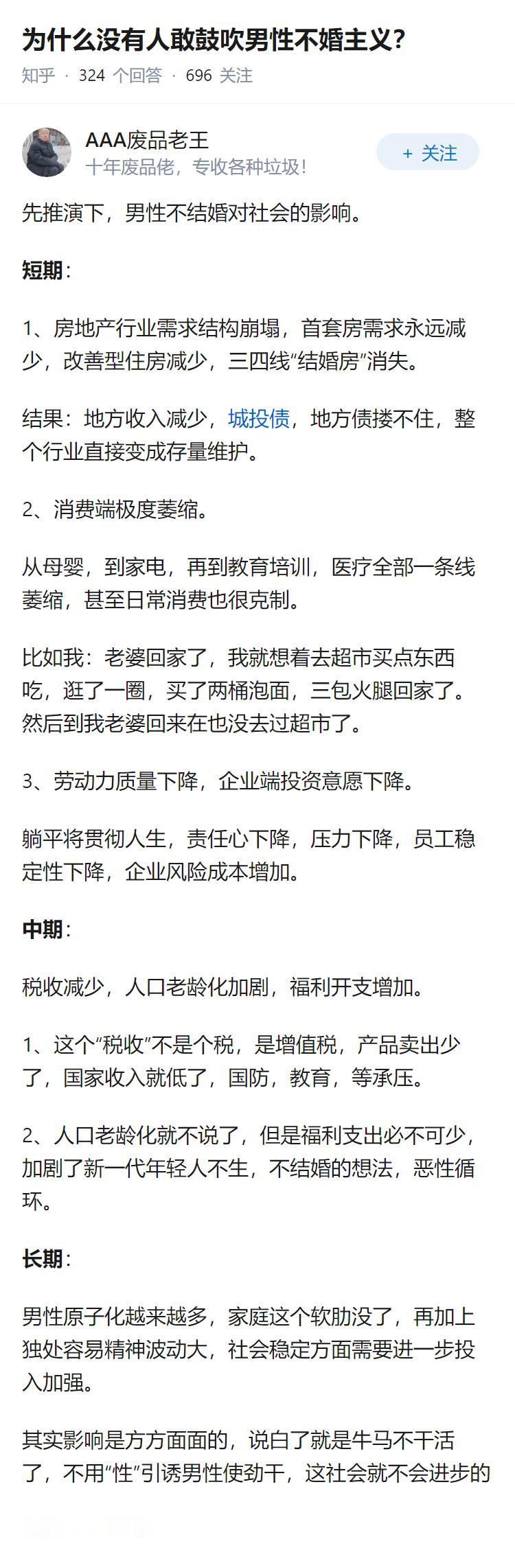 为什么没有人敢鼓吹男性不婚主义? -----------------------