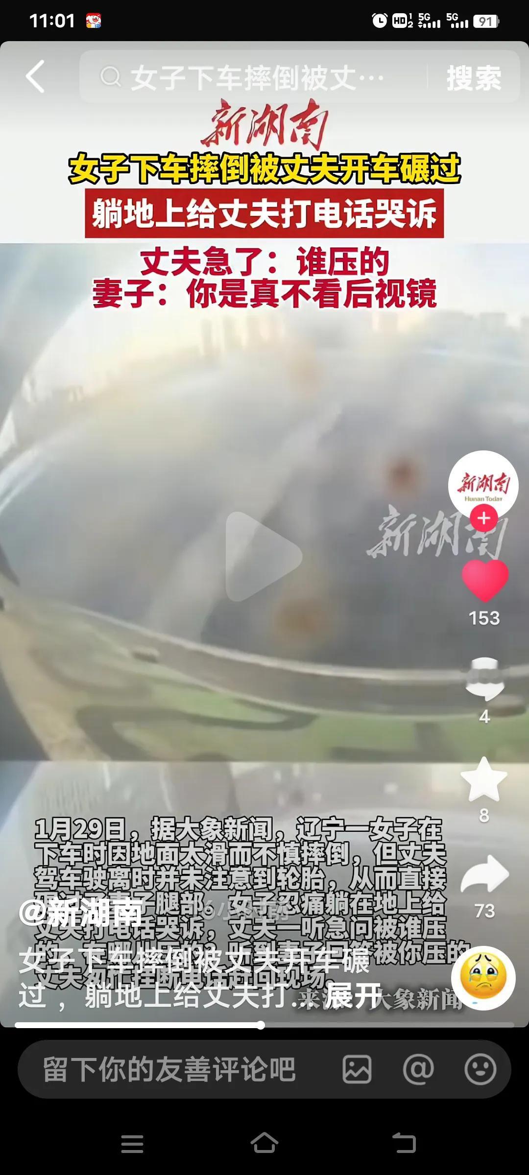 近日辽宁这事儿太逗了。一女子下车时,因地面积雪太滑摔倒,她丈夫驾车离开没注意,直接把车从她腿上碾过去了。 女子躺地上打电话哭诉丈夫被车压,让他敢紧回来。丈夫着急问“被谁压的?在哪压的?”女子回“被你压的,快回来”,丈夫赶紧挂电话返回。去医院拍片还好没伤到骨头。妻子:“你是真不看后视镜”。就是呀,有个小石头也得荡一下吧! 网友评论里好多人也分享了自己的同款尴尬经历,不得不说生活有时候就是这么戏剧。也有网友調配,大姐,不是我挑事,她他是有意的,看他扶你还笑呢?真不知道这丈夫当时咋就没留意呢。 大雪汽车打滑 辽宁雪天 女子摔倒
