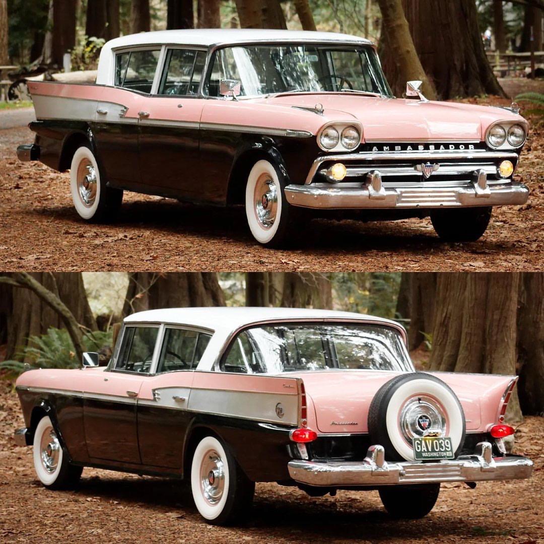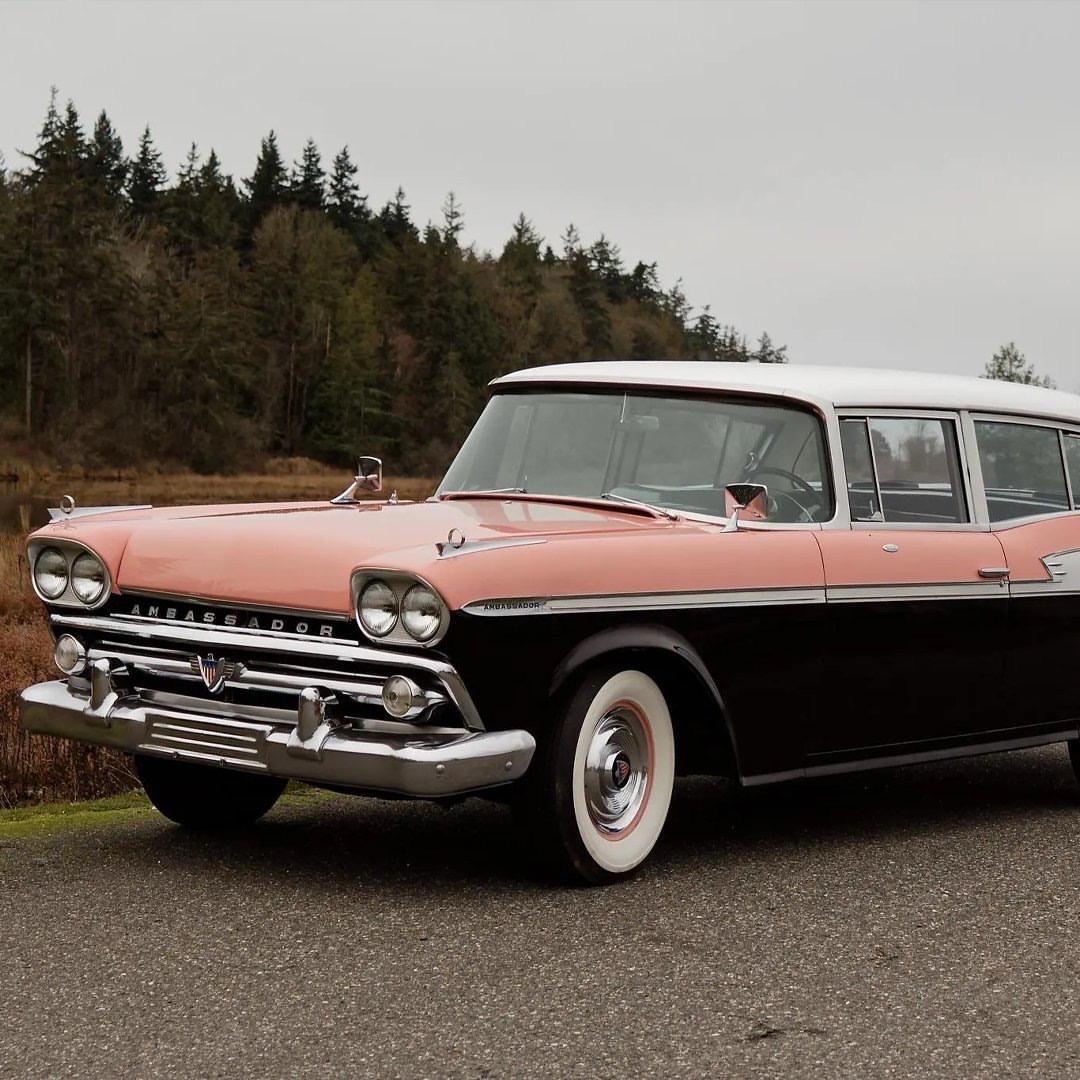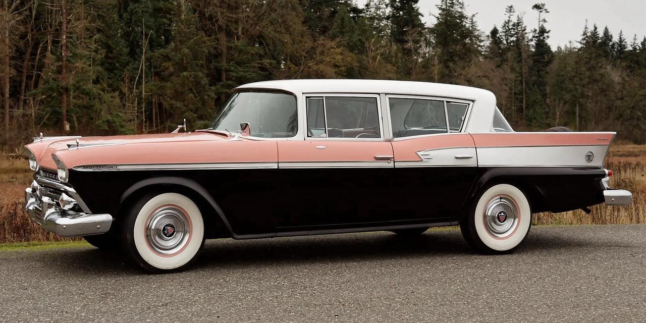 1959 年的 Rambler Ambassador Custom 四门轿车,是 American Motors 在战后汽车文化走向成熟时推出的高端代表:以“Ambassador V-8 by Rambler”之名面市,定位介于豪华与务实之间,主打舒适与可靠的美式巡航体验。 动力上可选 327 cu in(约 5.4L)V8,最大约 270 hp,匹配 BorgWarner 三速自动(带仪表盘按键换挡),117 英寸(≈2972 mm)长轴距带来宽裕乘坐空间与平顺行驶;还提供当时少见的 Air-Coil 气囊后悬选配,体现 AMC 在工程上的小步创新。 外观抛弃当年流行的夸张尾鳍,线条更内敛、配色讲究,既能满足对体面与气派的追求,也符合那一代人向公路与家庭旅行投射的浪漫想象。AMC 汽车摄影 经典老车 推荐官 好车