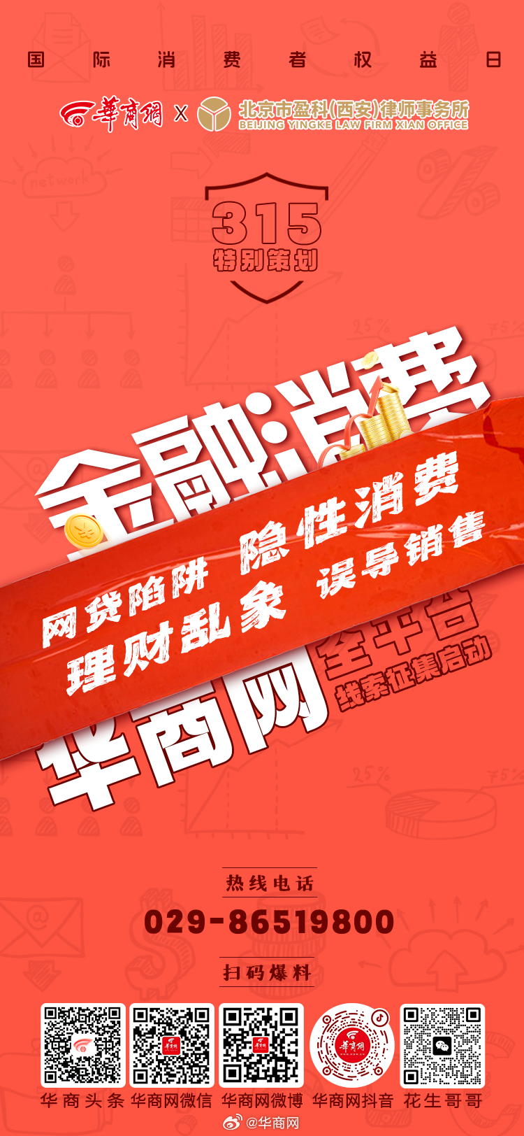 【华商网全平台“3·15”线索征集启动】网贷陷阱、隐性消费理财乱象、误导销售 ……如果你在日常生活消费中合法权益受到侵害欢迎提供新闻线索邀请专业律师 为你解答维权问题 #消费维权不止315#