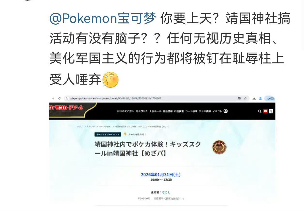 宝可梦踩靖国神社红线不是初犯热点现场 7年前就员工参拜靖国神社,宝可梦中国粉丝是掩盖与沉默 ,2026年 宝可梦 靖国神社搞活动,我看中国粉丝怎么说