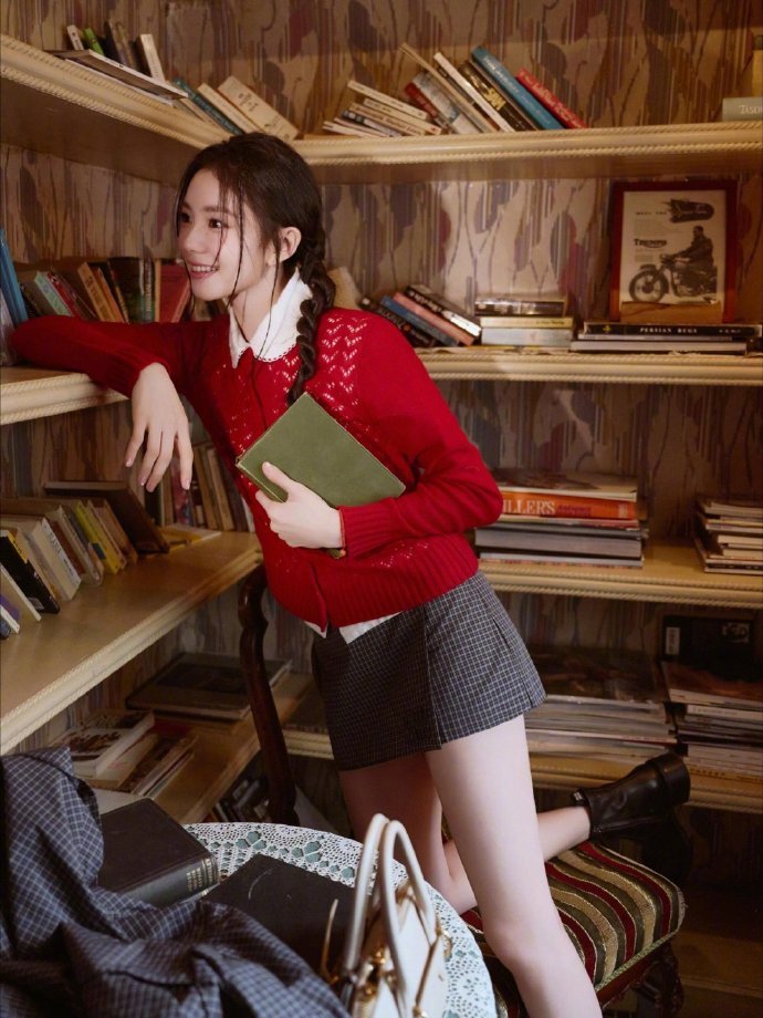 蔡文静这机场私服也太会了吧!露肩毛衣小露香肩,又纯又欲的feel拿捏得刚好,波点