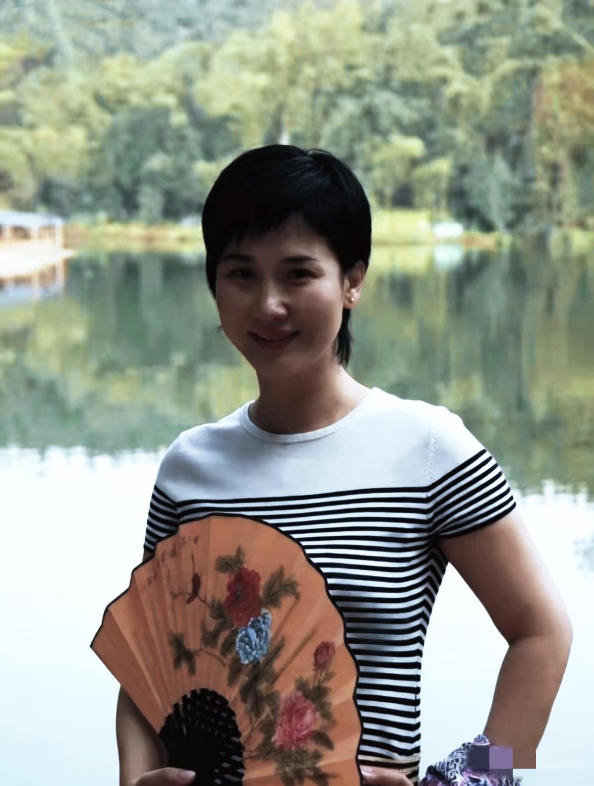 2009年7月,李小琳在家乡宜宾川南竹海莫愁湖游览时的留影,李小琳时年48岁。