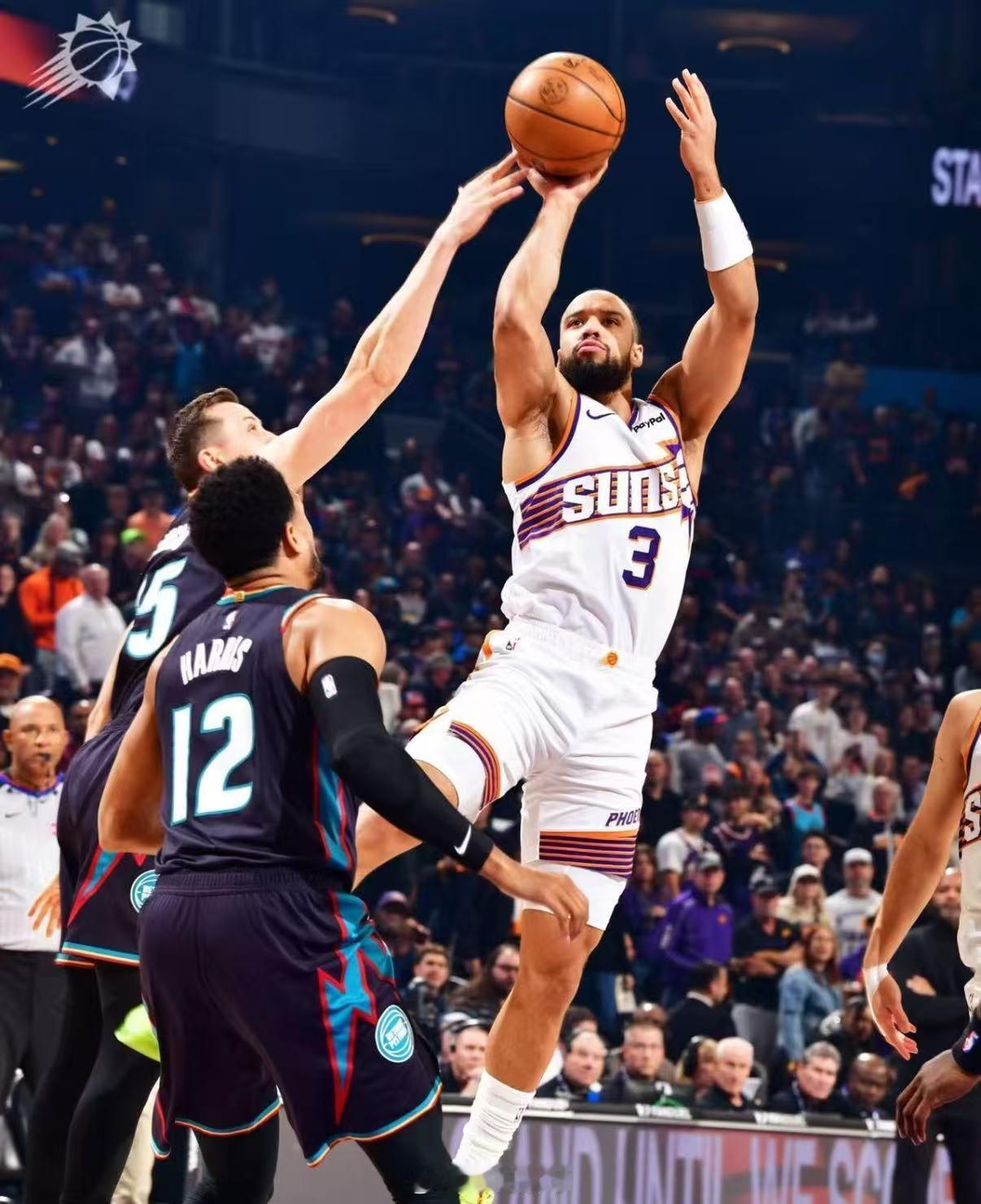 狄龙40分NBA常规赛太阳114-96力克活塞,狄龙轰下40分8板4助刷新生涯新高,布克缺阵下他成进攻核心,单节15分还在反扑时刻稳住局势,近三战场均30+状态拉满!太阳大胜活塞