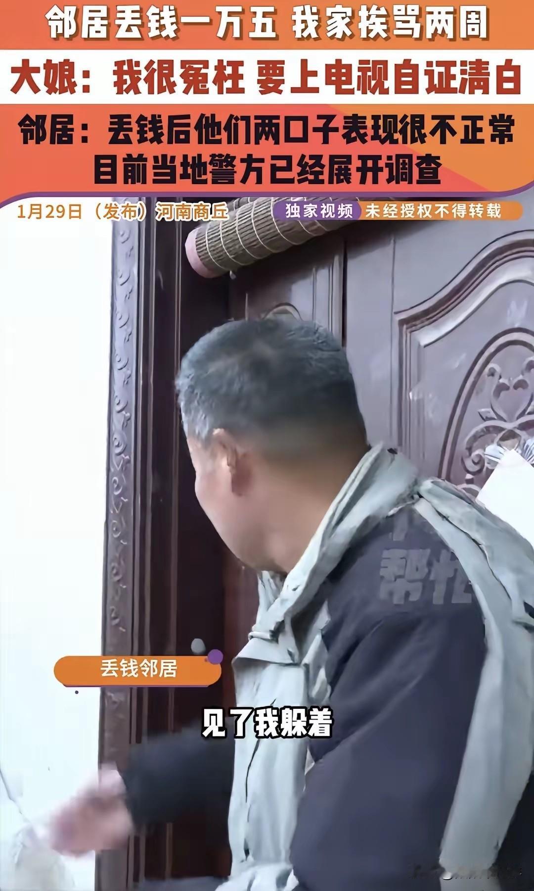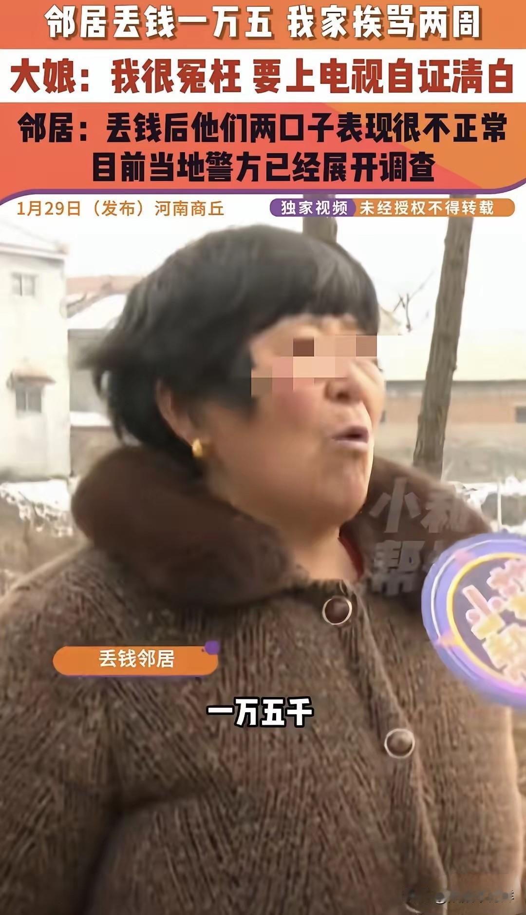 现实版,疑人偷斧?河南商丘,大娘的邻居家丢了15000块钱,怀疑是大娘家偷的,一直骂了她两个星期,大娘觉得冤枉,指着邻居说:你冤枉我,骂我,咱俩不能算完。邻居跳脚回道:我奉陪到底!明明我钱藏的地方,连儿女都不知道,可自从钱丢了,你两口子见我都躲着走。 这事儿一听就透着一股“疑人偷斧”的味儿。邻居认定钱是大娘偷的,理由居然是对方“见了自己就躲”。这种逻辑,跟古人丢了斧子看谁都像小偷,简直一模一样。 可反过来想,换作是你,平白无故被人指着鼻子骂了两周,换谁见了这邻居都得绕着走吧?不是心虚,是闹心。谁愿意天天跟一个把自己当贼的人照面? 15000块钱,对普通农村家庭来说不是小数目。可能是邻居大半年的积蓄,也可能是给孩子攒的学费。钱没了,着急上火能理解。但不能因为着急,就把脏水往最亲近的邻居身上泼。 更让人无语的是,这一骂就是两周。农村地方小,唾沫星子能淹死人。大娘出门买个菜,背后都有人指指点点。孙子去学校,同学都问“你奶奶是不是小偷”。这已经不是简单的邻里纠纷,是在毁掉一个家庭的名声。 大娘被逼得要上电视自证清白,这得是受了多大的委屈。换做性格软一点的,说不定早就憋出病了。她要的不是道歉,是一个能让全家人抬头做人的公道。 再说邻居那边,一口咬定“钱藏的地方连儿女都不知道”。这话听着硬气,可仔细琢磨就站不住脚。藏钱的地方再隐蔽,也架不住记性不好。说不定哪天自己收拾家,把钱挪了地方,转头就忘了。这种事儿在农村老人身上,太常见了。 退一步讲,就算钱真的被偷了,也该报警处理,而不是自己当法官。现在当地警方已经介入,等调查结果出来,是谁的责任谁担着。如果最后证明大娘是清白的,邻居这两周的骂声,又该怎么收场? 邻里处得好,赛过金宝。平时互相帮衬,农忙时搭把手,有个急事能喊一声。可一旦有了猜忌,几十年的情分能瞬间清零。这事儿给所有人提了个醒,遇到矛盾别靠猜,靠证据。别让“疑人偷斧”的闹剧,在今天还一遍一遍地上演。 各位读者你们怎么看?欢迎在评论区讨论。