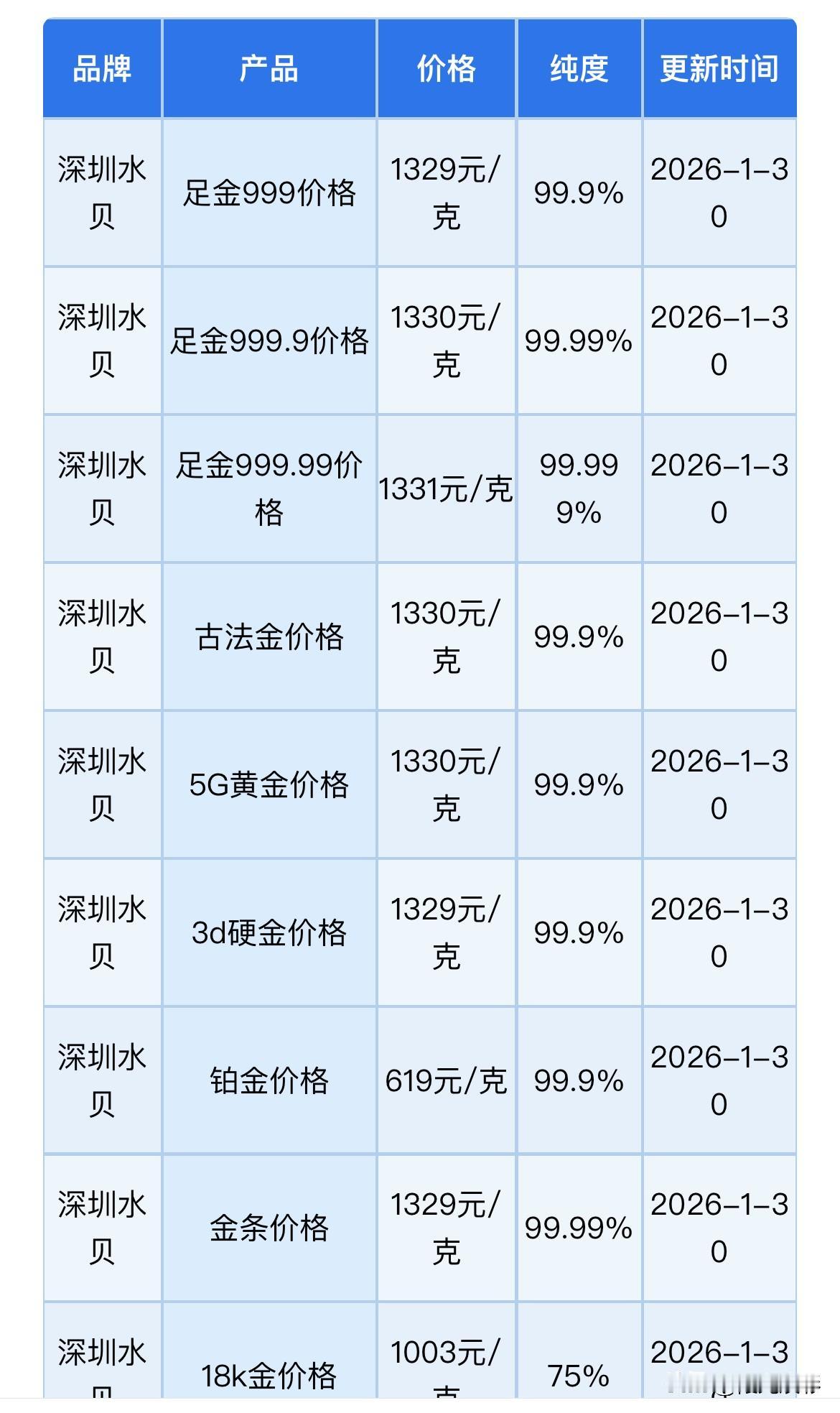 深圳水贝黄金批发价格下降了!以及购金注意事项! 那么来看看,现在水贝批发黄金是多少钱一克了? 水贝足金999价格1329元/克, 水贝古法金价格1330元/克, 水贝铂金价格619元/克, 水贝金条价格1329元。 同昨天深圳水贝黄金及各品种批发报价相比较,今天各品种价格都整体下跌了。 足金3个9、4个9、5个9、金条、古法金、5G金、3d硬金批发价格各分别下降了66元/克,铂金批发价格下降了38元/克,18k金批发价格下降了50元/克。 今日水贝黄金批发价格报价为每克1329元,工费另计,不同的黄金款式工费有所差异(每克10元至35元不等)。 今天下午深圳水贝金条回收价格1126.5元/克,金饰品回收价格1121.5元/克,铂金回收价格498.6元/克,白银回收价格是24.77元/克。 根据黄金网消息:金银“过山车”!黄金先冲5451美元再创高,随后因特朗普放风“与伊朗对话”及美联储主席人选即将落地,避险情绪快速退潮,现货金一度暴跌5%至5111美元,日内振幅340美元;白银最深跌超8%至104.57美元。美元反弹0.4%令非美买盘成本上升。 有关工银金行发出通知提醒:近期国际市场复杂多变、各类风险因素叠加,贵金属价格波动剧烈。 请您务必保持理性,强化风险防范意识,审慎选择参与品种,避免盲目投机交易,严格控制投资规模,切实守护好您自身的资产安全。 来分享个选黄金三技巧: 1,那么怎么选黄金呢? 首先黄金不需要选品牌,因为黄金的纯度一样,只是品牌溢价导致价格有所不同,建议哪家合适买哪家,尽量不要选一口价金饰,折算下来每克单价太高,建议按克购买最划算。 2,如何判断我买的黄金是否是纯金? 直接看内壁的钢印,3个9和4个9代表黄金的纯度,足金上面印有AU 999、G999和足金999的字样,如果只有999,你真的要当心。 3,那3D 5G古法金是真的黄金吗?这里有什么区别? 3D 、5G和普通黄金都是真黄金,只是工艺不同,加工过后硬度更高,不容易变形。古法黄金是纯手工制作,工艺性更强。 再来分享个,散客怎么在深圳水贝购买黄金呢? 1、金展珠宝广场负一楼,柜台很多,黄金款式多,适合散客逛购买,不过人多拥挤。 2、水贝国际、金座、壹号、银座、特力等是贯通的,这里除了黄金还有铂金、钻石、翡翠、珍珠等,人没有那么拥挤。 另外,要申明一下: 水贝是全国最大的黄金批发市场,批发价格是国际金价+手工费(不同的工艺,工艺费不一样)。 还有哦!水贝的黄金纯度是没有问题的,不放心的话,可以在附近找NGTC机构进行检测。 再就是,在水贝购买黄金是没有包装盒的,另外卖出去的黄金是离柜概不退换的,除非有明显的质量问题,所以购买之前一定要确定好款式再入手,买单之前一定要仔细检查没有问题在付款。 最后就是,网店或者直播等销售的水贝黄金,如果报价远低于黄金行情,就需要注意了。 所有信息,都只是提供参考价值! 购买黄金有风险,投资需要谨慎,不要盲目跟风!水贝黄金暴雷 水贝黄金打金 广东黄金价格 水贝黄金工费 惠州水贝黄金 水贝黄金配货 深圳黄金按克卖