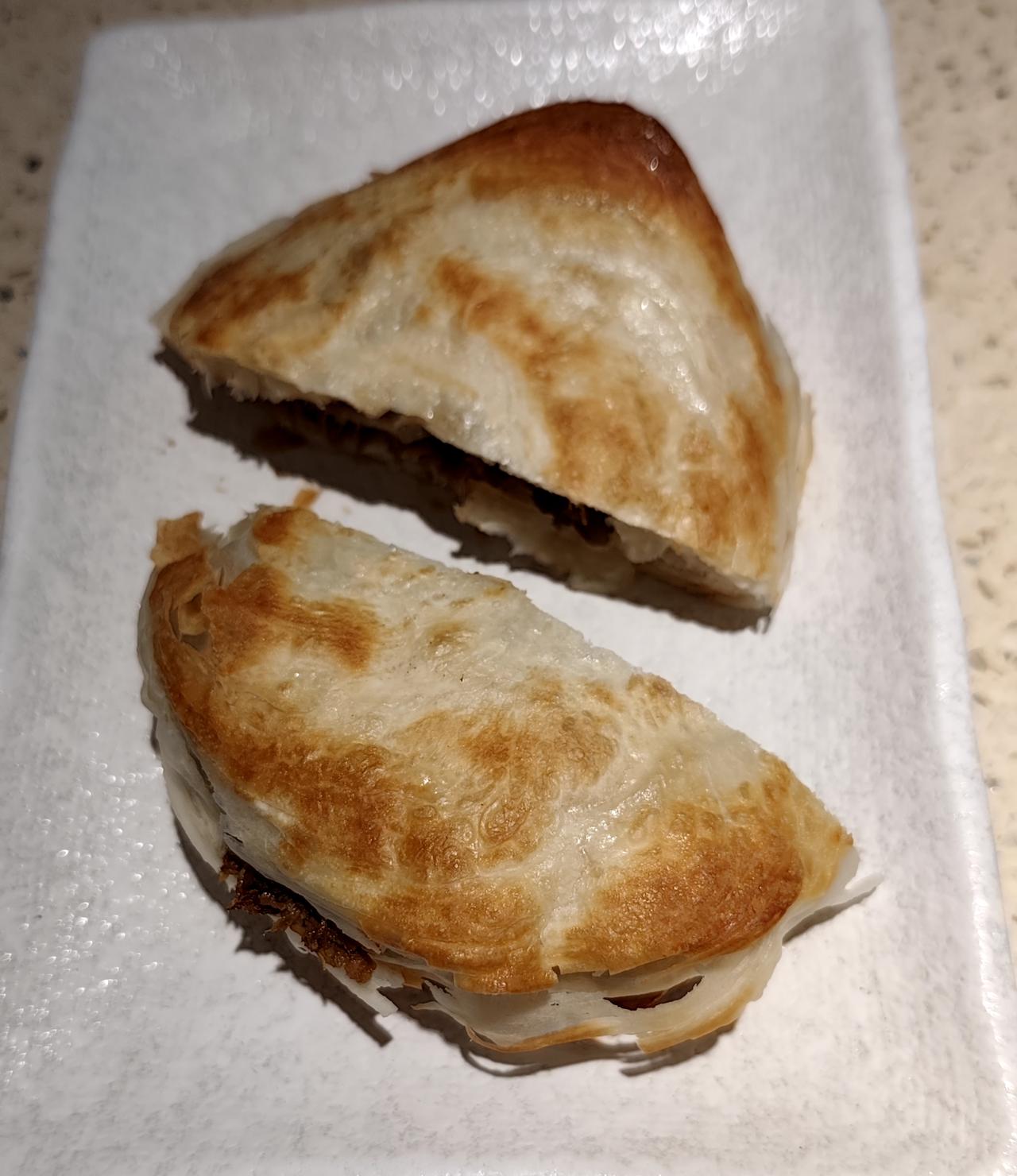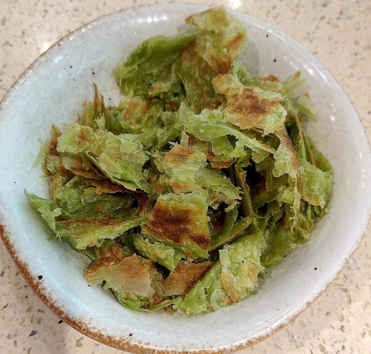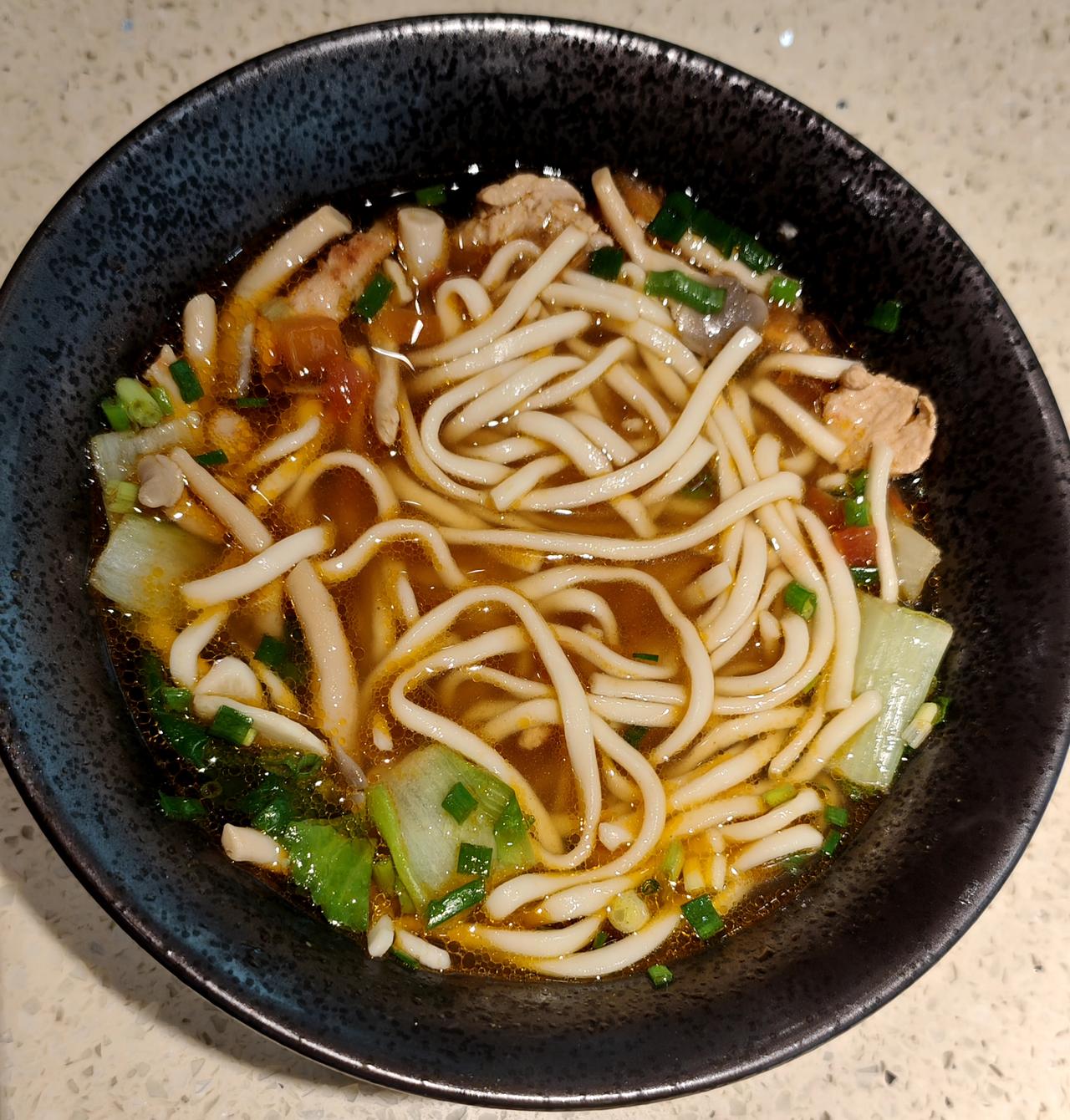 偶然想吃一点外地的美食,想拍照片,我就约了一个喜欢吃面的旧同事过来绿地缤纷城陪我一起吃碗面,绿地缤纷城有一家大师兄是吃面的,我扫码点了一碗大的面给旧同事,还有肉夹馍和菠菜饼,我就点了一碗小的面给自己,我问旧同事这碗面是不是你家乡的味道?旧同事说味道还不错。