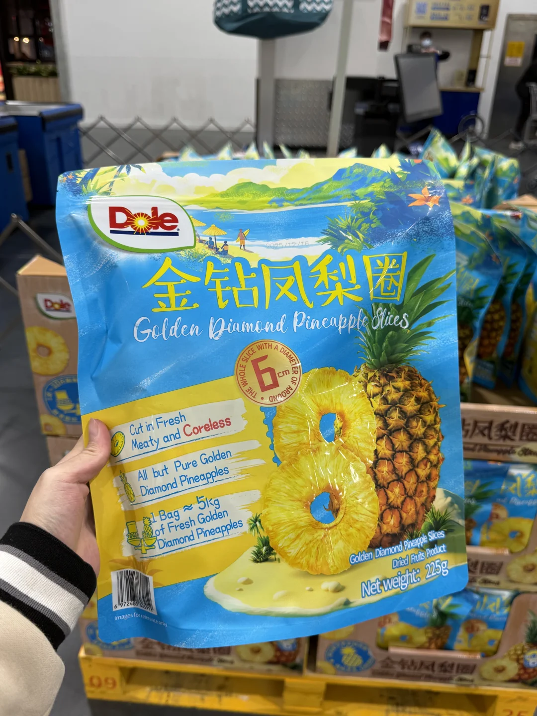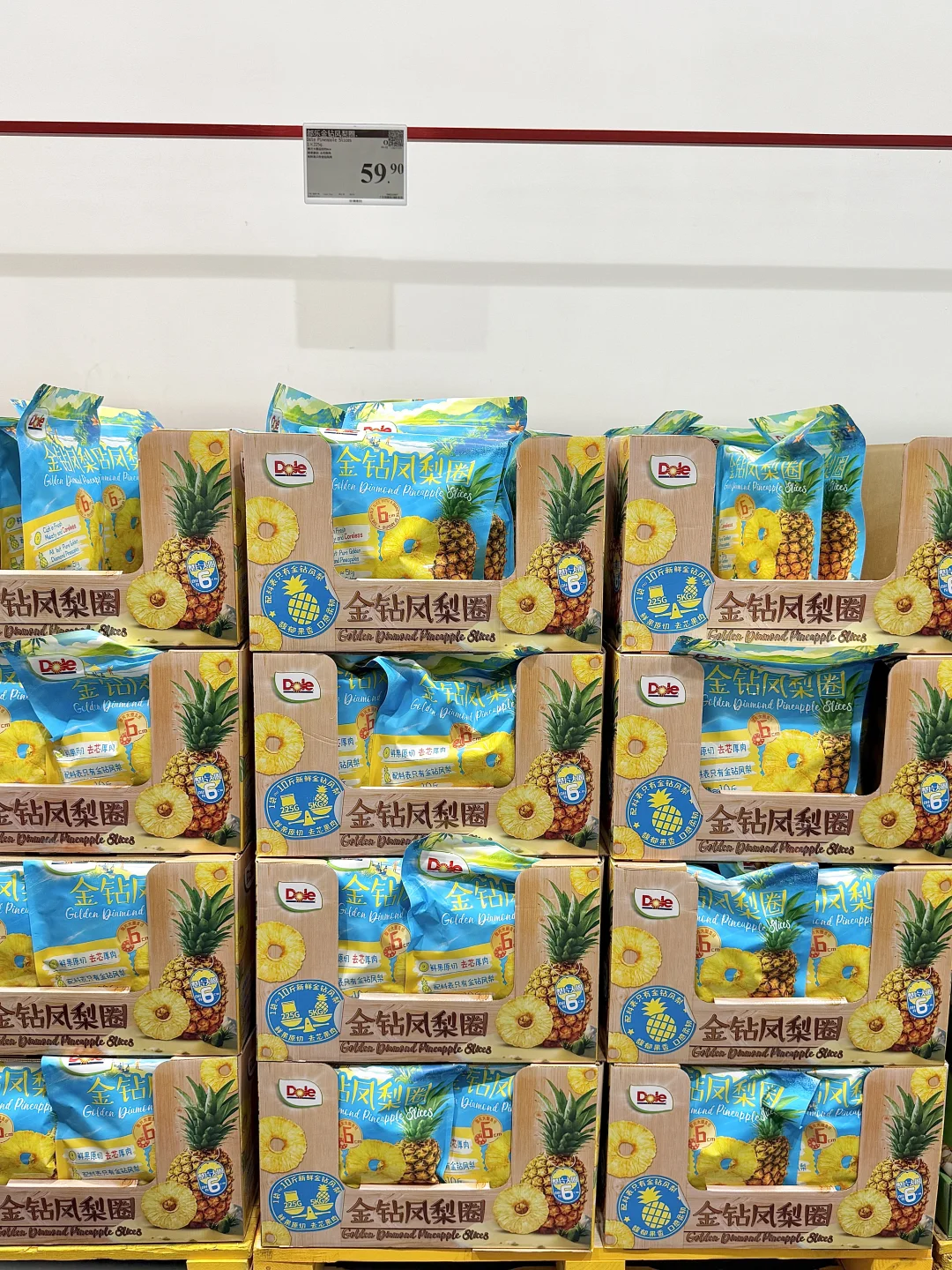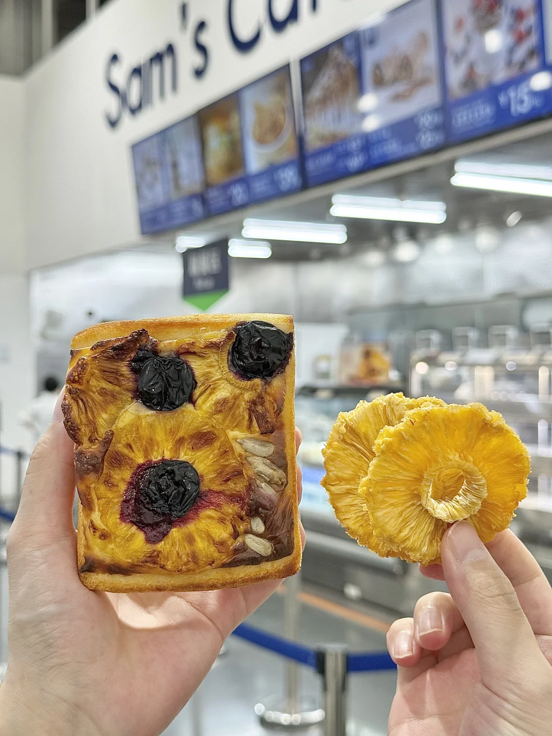 闲逛山姆没想到给我挖到宝藏零嘴 就是这个看起来平平无奇的都乐金钻凤梨圈 配料表巨干净,只有凤梨! 实物和包装完全没差,厚切大片无核,咬下去梗啾啾超有嚼劲 酸甜比例刚好,凤梨香气超浓郁 独立小包揣兜里,摸鱼解馋都合适!嗜酸星人闭眼冲! 而且凤梨圈+蓝莓+芝士+吐司,烤箱180度6分钟就能轻松实现凤梨芝士吐司自由!