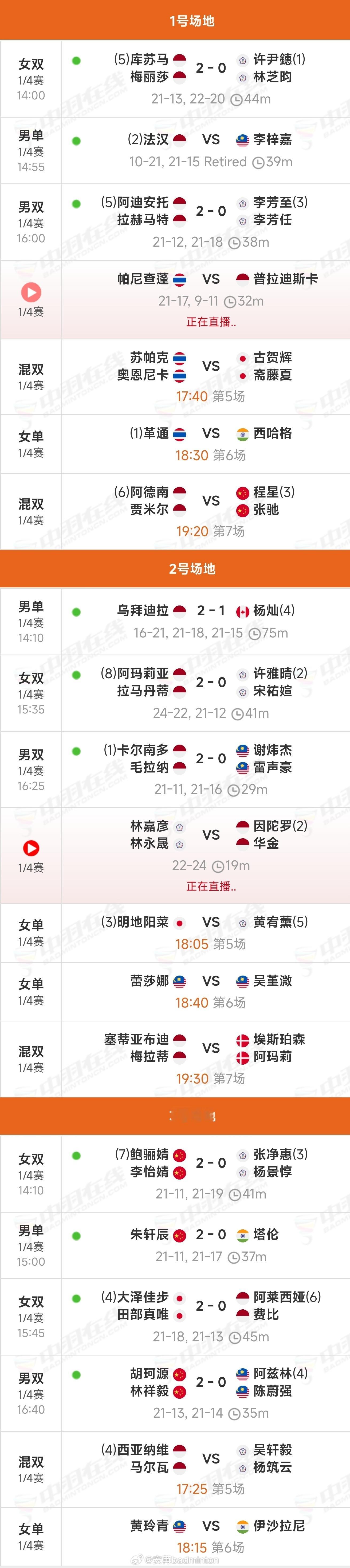 国羽三个单项已闯入四强,截止目前全胜,仅剩混双还未上场!继续加油!