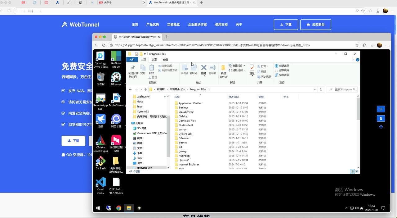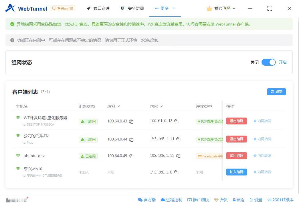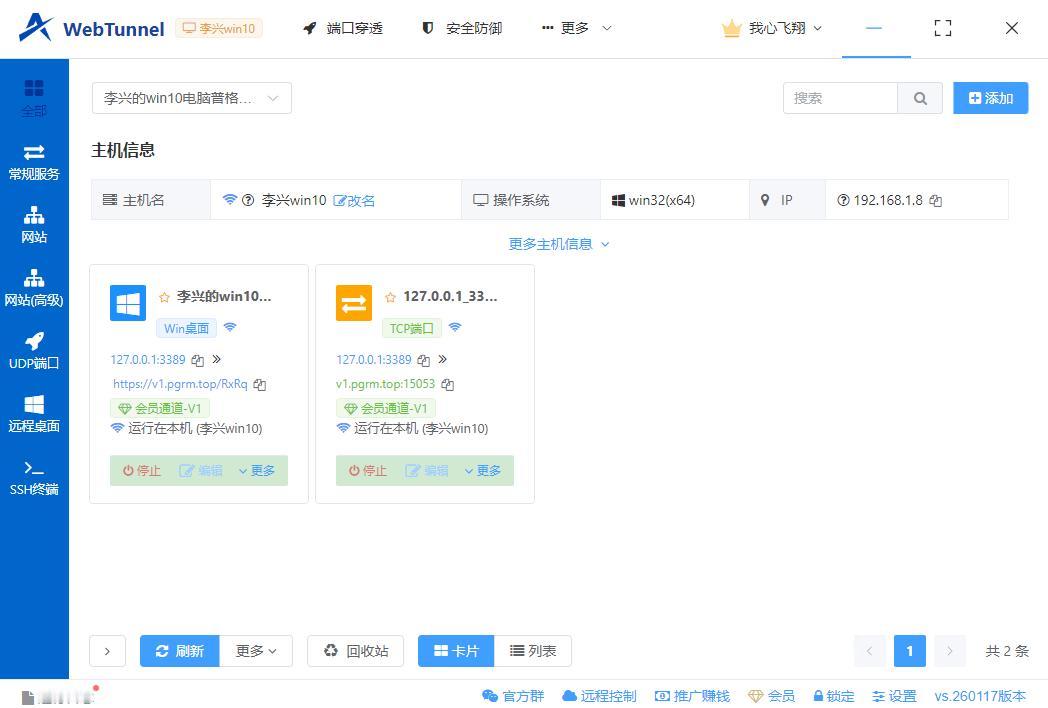 三种方法远程访问家里的 windows 电脑,操作简单又流畅! 1、使用网页 windows 远程桌面,访问者不用安装客户端,浏览器就可以访问远程桌面。对于部分企业防火墙只放行 80/443 的公司比较友好。 2、创建内网穿透记录,映射 3389 端口即可,访问者使用远程桌面客户端访问,速度较第一种快,体验好一些。 3、将两台电脑加入组网,使用虚拟 ip 即可访问,访问者需要使用远程桌面客户端,速度最快,安全性最好。 这里是操作视频,有需要的朋友们可以参考哈: