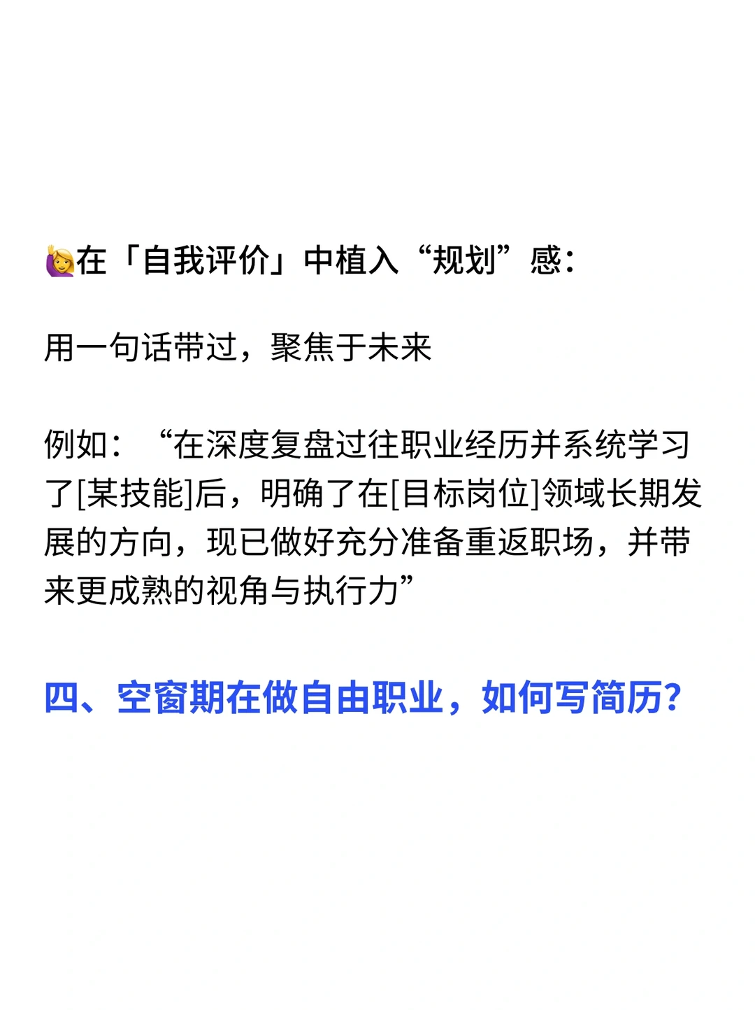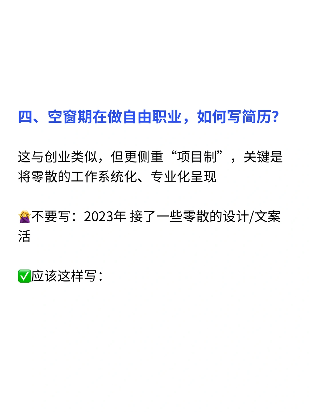 四、空窗期在做自由职业,如何写简历?(详细内容👀见图)