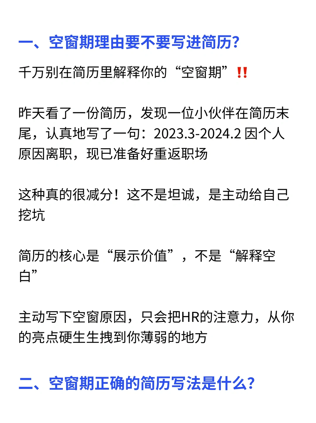 主动写下空窗原因,只会把HR的注意力,从你的亮点硬生生拽到你薄弱的地方